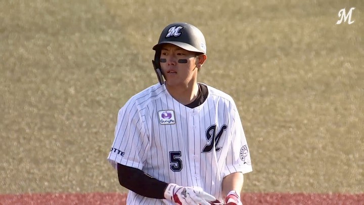 本日3安打猛打賞の #安田尚憲 選手! 1打席目にセンター前ヒット、3打席目と4打席目には広角に長打を放つ!