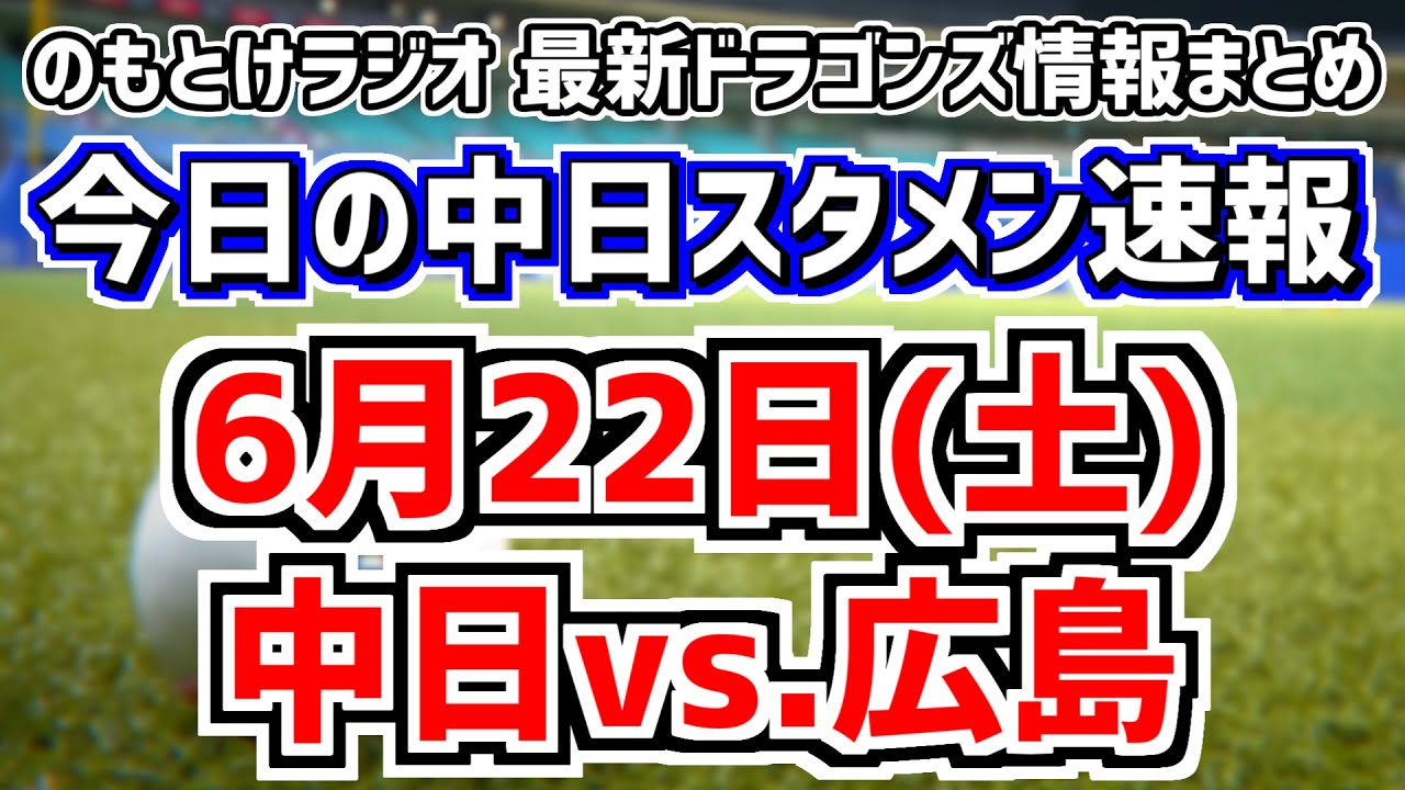 勝てば連勝の中日スタメンがどうなるのかを見守る放送 6月22日(土) 今日の中日ドラゴンズスタメン速報/試合直前雑談 中日vs.広島 のもとけラジオ番外編