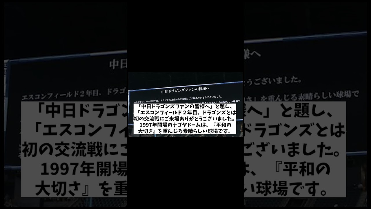 日本ハムドラゴンズに行きな計い4カード ぶりの勝ち越しを飾った試合後センターの バックスクリーンに来場した名古屋を中心 とした中日ファンに向けたメッセージが 提出された中日ドラゴンズファンの皆様へ 題しエスコンフィールド2年目ドラゴンズ とは初の交流戦にご来場ありがとうござい ました1997年会場の名古屋ドームは 平和の大切さをじる素晴らしい球場です
