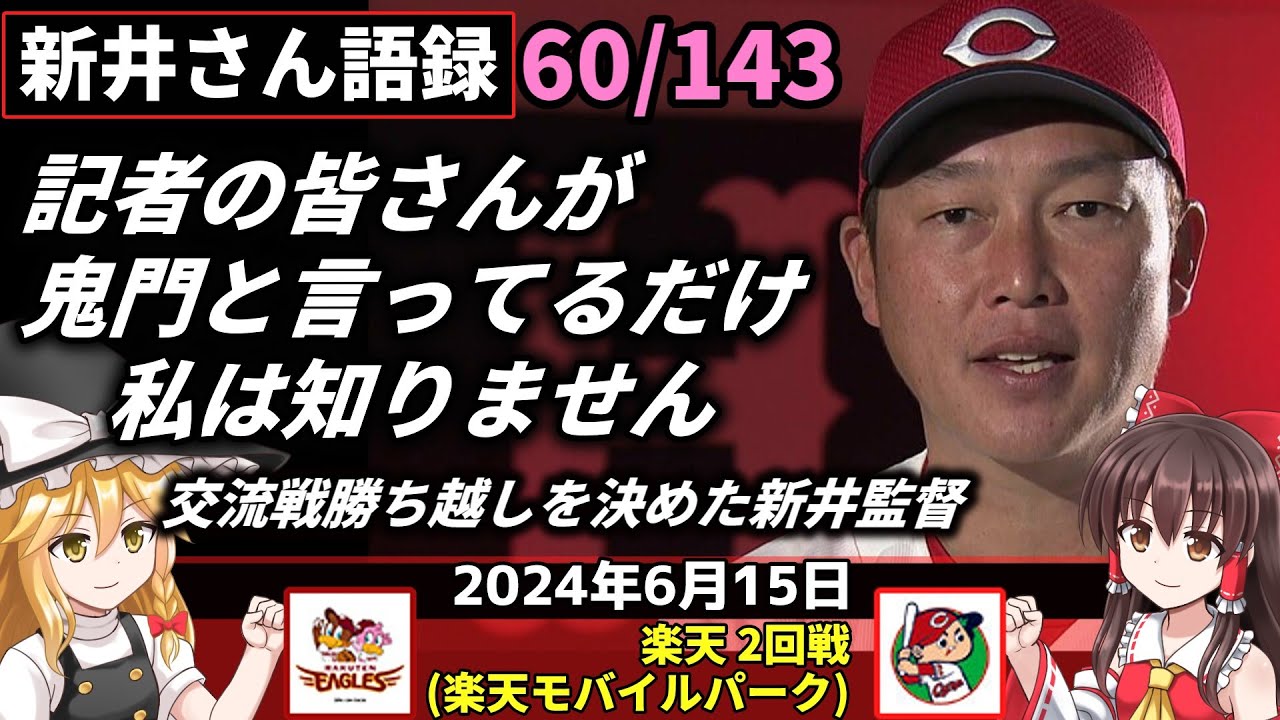 「記者の皆さんが鬼門と言ってるだけ 私は知りません」【新井監督語録:2024年6月15日】玉村 緩急自在に初勝利。カープ7年ぶり交流戦勝ち越し。二俣 巧みに先制打。堂林 貴重な追加点。