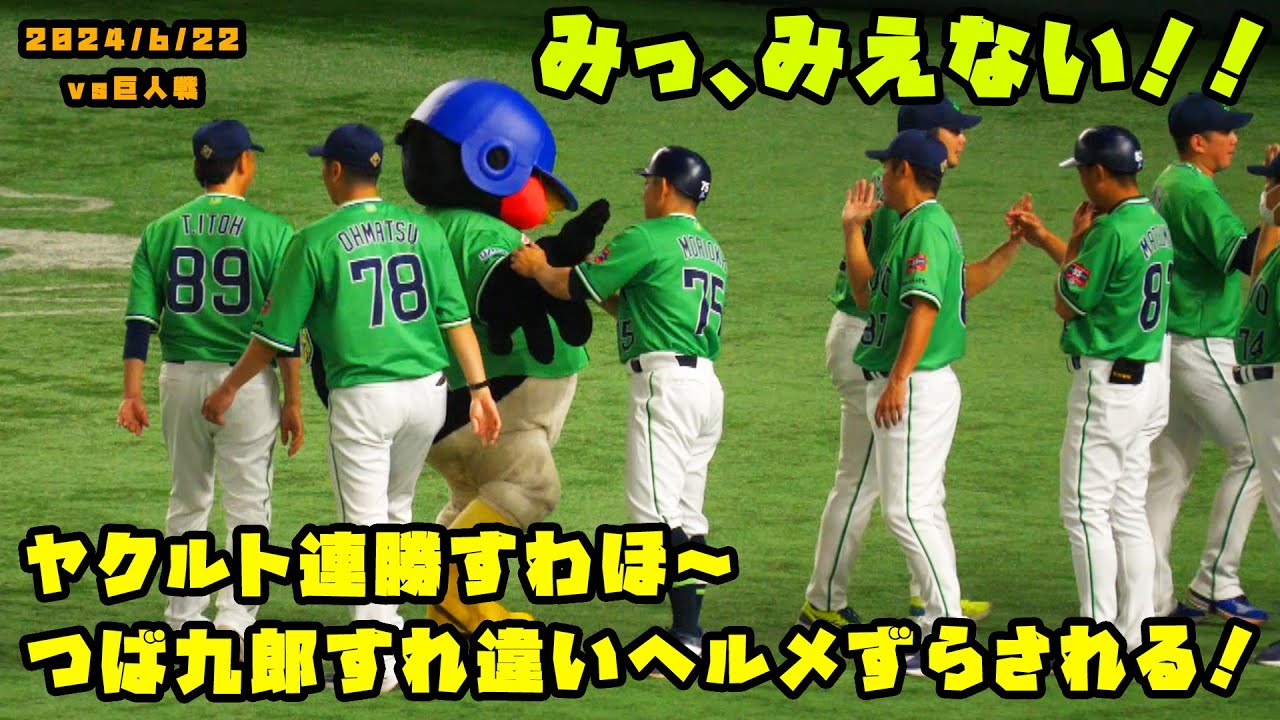 ヤクルトすわほー!!つば九郎はすれ違いでヘルメットずらされる!? 2024/6/22 vs巨人