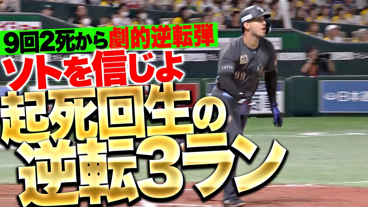 2点を負う千葉ロッテは9回、2死まで追い込まれるもランナー1,2塁とチャンス。ここでソトがアウトコースのストレートを捉えライトポール際への逆転3ランホームラン!!! 9回2死から起死回生の一撃を放ちました!!!