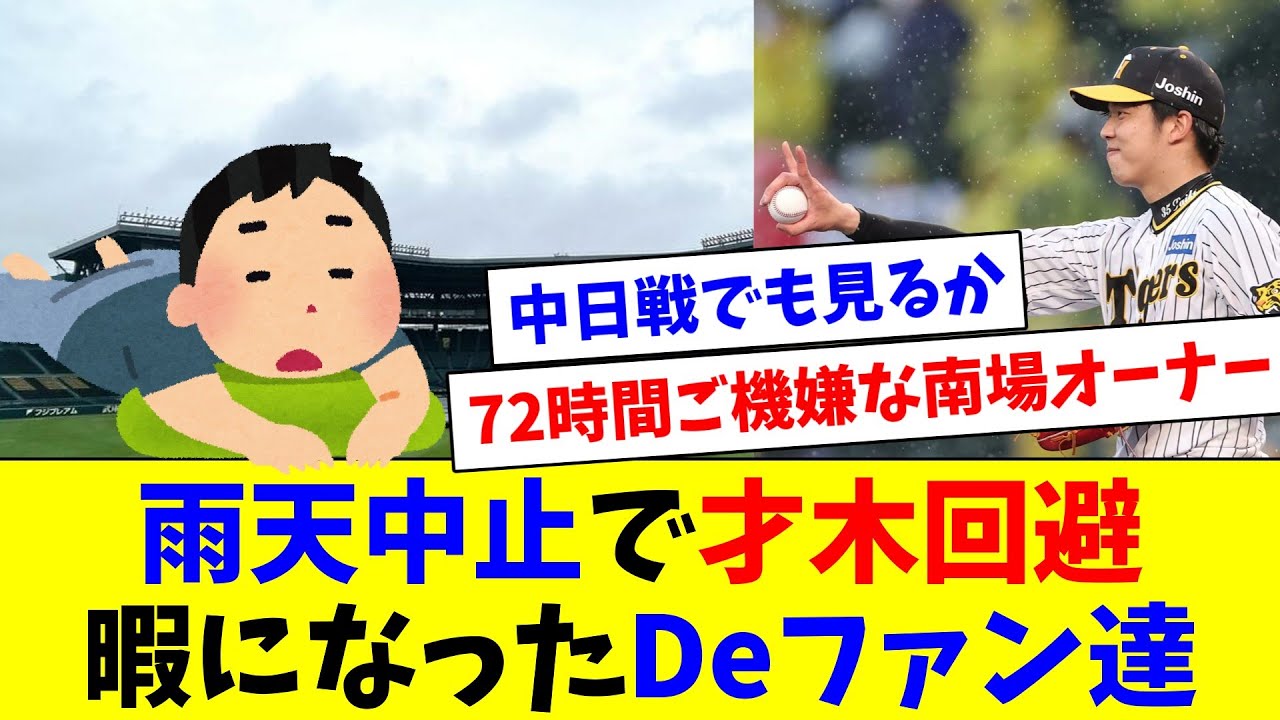 本日のDeNA阪神戦は雨天中止、先発才木を回避して喜ぶも暇をもて余すDeファン達