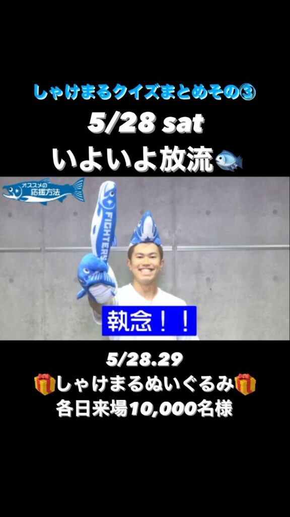 5/28.29 ジャイアンツ戦 #しゃけまる ぬいぐるみ 来場10,000名様にプレゼント #今川優馬 #執念先輩 #北山亘基 #北山教授 #歩くコンディショニング博物館 Hokkaido Nippon-Ham FightersHokkaido Nippon-Ham Fighters Official MediaNPB Pacific LeagueOfficial Mediaしゃけまる今川優馬北山亘基北山教授北海道日本ハムファイターズ執念先輩歩くコンディショニング博物館 NPBHUB.COM | The Fanbase of Nippon Baseball & Nippon Professional Baseball