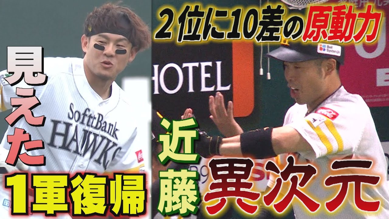 はい交流戦も終わってパリーが再開しまし た週末はマリンズの3連戦です行き [音楽] ましょう先週金曜日の初戦初回から打線が 繋がりましたまずは2番 [音楽] [拍手] 今宮レフトスタンドに飛び込む第3号その ホームランで幸先よく先制し ますさらにランナーを2人置いて 今シーズン初スタメンの 正スタメン器用に答えるタイムリーで1点 を 追加さらにさらに北九州での通算打率が4 割越えの 回北九州男にもタイムリーが生まれ初回に 1挙4点を奪い ますそして妖怪京王大学の先輩正に負けと 広瀬慶コンビが躍動先発全員アンダの ホークスがリーグ戦再会の初戦をもにし まし [音楽] たこの試合京トリオが初めてスタメンに名 をつねまし た先発は前回事故ワーストの7失点をきし た ツ投手をむき出しにしたという言葉通り2 回以降コースをうまく使いマリーンズ打線 に的を絞らせ ずスコアボードに0を並べますすると バックが盛り立て ますここで 今宮ゴールデングラブシを5度受賞した名 のスーパレで得点を許しませ んそして打線は7回ランナーを2人おいて 柳町しぶとくレフトまで運び犠牲フライ 前日の後輩2人の活躍に刺激を受けた男の 1追いつき ます後頭を続ける津は8回のマウンドへ ここで圧巻のピッチング [音楽] 先発では初めての8回を3者連続3進画の ピッチングであは味方の援護を待ち ますするとその裏でしたオに負けをつけ たくなかったと話した [音楽] シュート打球はライトホーム ランテ津の力にくいる選手会長の1発が まさに熱金の決勝アーチとなりまし [音楽] たカード3連勝を狙った昨日の試合どもを 沸かせたのはこの 男リーグトップの山川に1本差に迫る近藤 の11号ツラでリードを広げ ますしかし2点リードで迎えた回スが まさか逆転3ランを 浴びドームは重苦しい空気にそれでも嫌な 流れを拭い去ったのはこの 男これぞリーディングヒッター近藤の 一振りでチャンスを作る とその後ランナーを3塁に進め代打中村 この辺りで3塁ランナーが正官ドタン場で 同点に追いついたホークス引き分けに 持ち込みまし たはい3連勝とはなりませんでしたがね いい粘りでしたでもう近藤選手さすがです よもう右手をね痛めてるにも関わらずこの 活躍ですからねうんえもう先月今月と打ち まくっておりますありがとうございます それでは順位表を見ていきましょうはい2 ファイターズとねシーズン さんこの時期にもゲームですよもうね安心 できますけどいやでも確かですね78年 ぐらい前に日ハと10ゲーム以上下がって 確か逆転されてますよねそれ考えると全然 安心できないてそうです油断禁物ですこの まま攻め切ってほしいですね油断7円はい さ続いてはファーム情報に行きましょう 牧原が怪我から実践復帰 です右脇を めがの2軍に出場およそ2か月ぶりに実践 にみましたこの日牧原は1番指名打者で 出場2打席でヒットこそありませんでした が久々の実践に手応えを口にしました痛み もなく触れたことが今日は良かったかなと 思いますも不安なく全てのプレイができる ようにこっちでしっかりやっていきたいな と思ますはいはねりね成してねセカンド1 本勝負ですからね1分で待ってますよさあ そして明日からは京セラドーム大阪で バファローとの3連戦となっています TNCでは明日と木曜日の試合を生中継 ですぜひご覧 くださいOG