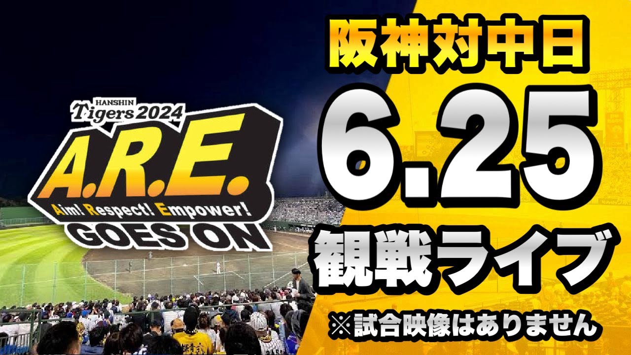 6/25 阪神タイガース 対 中日ドラゴンズのセ・リーグ公式戦を一緒に観戦するライブ配信です、本配信に試合のLIVE中継映像はございませんので予めご了承ください。