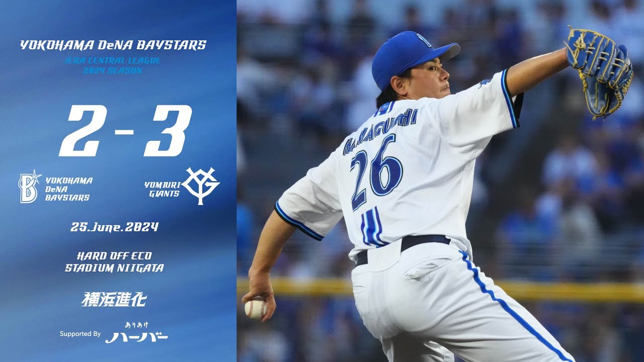 2024.6.25ハイライト【DeNA vs 巨人】先発の濵口選手は緩急を生かした投球で6回1失点に封じて試合を作る。土壇場9回にオースティン選手の一打で1点差に迫るもののあと一歩及ばず敗戦を喫する。