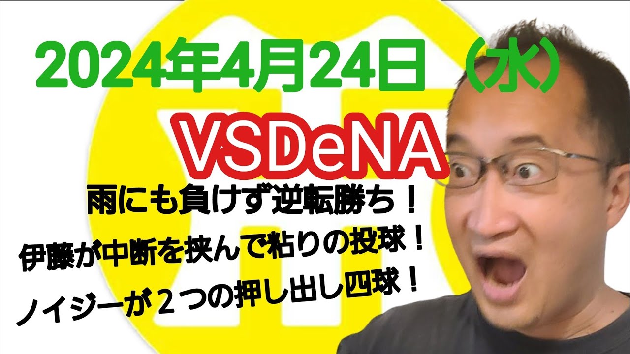 【阪神タイガースについて語る動画】2024年4月24日(水) ● DeNA 3 × 5 阪神 ○ 雨の中逆転勝ちで7連勝! 伊藤が雨天中断を挟んで粘りの投球! ノイジーが先制と勝ち越しの押し出し四球!