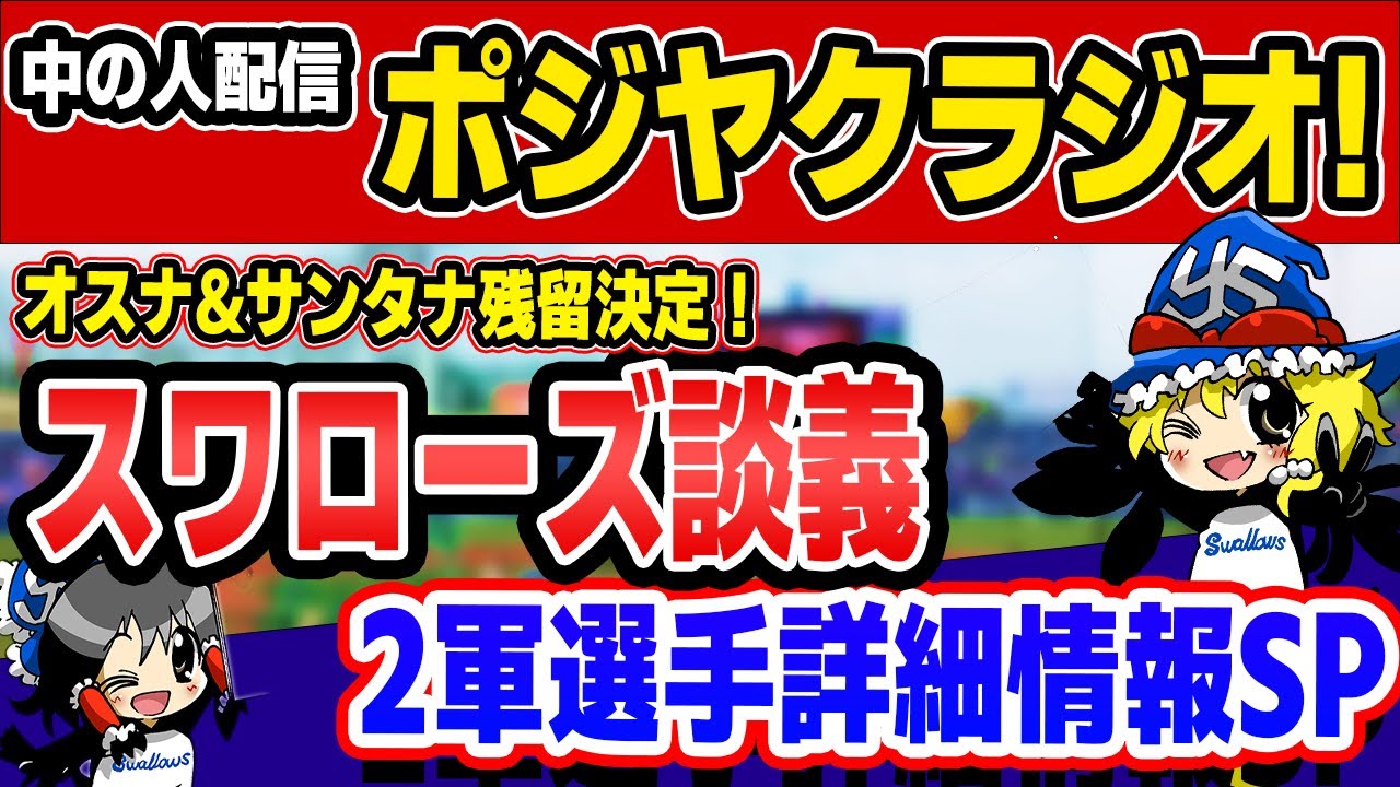 はい皆様どうもこんばんはポジ役ですと いうわけでね本日もスワローズの話題を 中心にお届けしていくラジオ風番組ポジ役 ラジオやっていきたいと思いますので よろしくお願いいたし ますはいということでね音声えBGMの方 届いていますでしょうかえま届いていたら ですねチャット欄コメント欄の方で教えて いただけますと最ですまたですねまた音量 などえ大きい小さいなどありましたらです ね適宜行ってくださればこちらの方で調整 をして配信していきたいと思いますので よろしくお願いいたし ますさてさて皆様1週間ぶりになりますが いかがお過ごしだったでしょうか先週はね まスワローズというかま大体ねプロ野球の 中で週前半は交流戦の予ということもあっ て試合がなくてで週後半からねえリーグ戦 えセリーグ同の戦いが再開というようなま そういう1週間だったんですけれどもプロ 野球のね試合がない週前半皆様はね一体 いかがお過ごしだったんでしょうかって いうところですねうん結構ねうちの配信来 られてる方がっつりねスワローズ応援し てる方多いと思うんでこうやってねまプロ 野球の試合まスワローズの試合がない日の 平日の夜とかっていうのはねま一体何し てんのかなっていう風にね思ったりもする んですけどもまちなみに僕はまあそうです ね普通に家事をしたりとかあとはま ちょっと溜まってたお仕事の方やったりと かっていう感じであんまり面白みのない 感じでね過ごしてありてましたけれどもあ コメントのところで皆様ありがとうござい ますえゆきさん白ゆさん天とかさんマ ケージさんうじほさん純一白さんトンボ 鉛筆の佐藤さんどうもこんばんはという ことでよろしくお願いいたします音声の方 もね大丈夫ということでねいただきました のではいありがとうございますあなるほど ね天とかさんね野球なくて残業はったわっ ていうねコメントいだいてますけど やっぱりそうですよねあんまりね野球が ない日はねこうやって仕事の方にね集中を してまそこでしっかり成果を出してでま 野球ある日はねできるだけ早く帰ってこう 野球を見るっていうのはねやっぱり野球 ファンのあなんというかあるべき姿って ところでもありますよねそうですね さてさてじゃあそんなねスワローズの1 週間のね振り返りというところからね本日 も早速やっていければなという風に思って おりますよいしょということではいでは 画面ね1週間の振り返りというところで スライド映させていただいおります先週1 週間のスワローズの戦いぶりご覧のような 戦いぶりでしたということではいえ先週の スワローズですねすいませんこれちょっと ね頭のところ2軍線になってるけどこれ1 軍戦ですねはいスローズのね1軍え選手は 金曜日土曜日日曜日と3連戦読売り ジャイアンツと東京ドームで戦いまして 結果は2勝一杯の勝ち越しでございました ということでよかっ たやっぱりね東京のね巨人戦で勝ち越すの が1番いいんだからあということでね本当 にこれは勝ち越して良かったなという ところでまなんと言ってもこの初戦のね 吉村投手が先発した金曜日の試合ここ勝て たのがね大きかったかなという風に個人的 には思っておりますま吉村投手ねあリーグ 戦再開の初戦のね先発マウンドを任される ということでまもはやねこうライアン不在 の中ま現状スワローズのね先発 ローテーションの中ではもうエース角えま 1番目のね存在になってきてるかなという ところでまこの式もねえいつも通り弾数 少なくそして8回途中までを投げて無失点 っていうねま見事な投球でえチームにね 勝利をもたらしてくれましたいや本当に 良かったですねうんまここでね1つ勝てた んで吉村投手もね今後乗っていけるかなと いうところでしょうかねうんま地味にね 吉村投手も1か月間ぐらいずっと勝ち星が ねついてなかったんでまこれが約1回月 ぶりの勝利っていうところもねま本人的に も良かったのかなっていうところはあり ますねはいで続きましてね22日えこちら 2戦目になりますけれども2戦目はね先発 サイスニード投手こちらがねえ頑張って くれたかなというところですねうんま サイスニード投手もなかなか今シーズンね 序盤は結果が出なかったんですけれどもま 徐々に徐々にねえ調子を戻してきてくれて この日は6回を投げて無失点ということで ねま三振も8つ奪うということでねま かなりいいピッチングだったかなという風 に思っておりますうんやっぱりこうやって ねピッチャー人がしっかりね試合を作って いくと野球は勝ちやすくなるかなという ところままたねこの試合はバッター人の方 にもね目を向けてみますと8回え2アウト ランナーなしの場面からね長岡選手が3 ベースヒットで出てで村上選手がショート へのナイアンだもうこれ1塁ヘッド スライディング激走があったかと思います けれどもね本当にねなんだろうな村上選手 らしいというかうん野球にきな全力プレイ まそういうところが運だ1点えさらにね