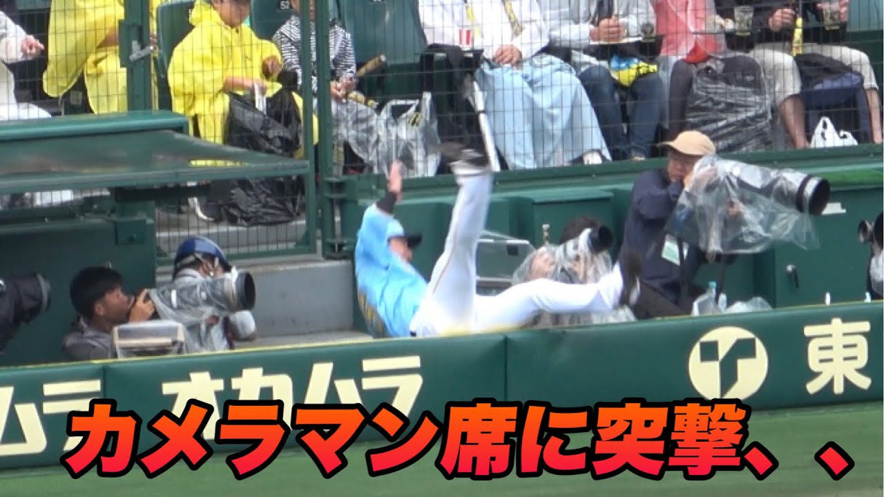【死ぬほどめっちゃ心配、、カメラマン席に渡邉諒が突っ込んでしまい試合が中断に】阪神対西武