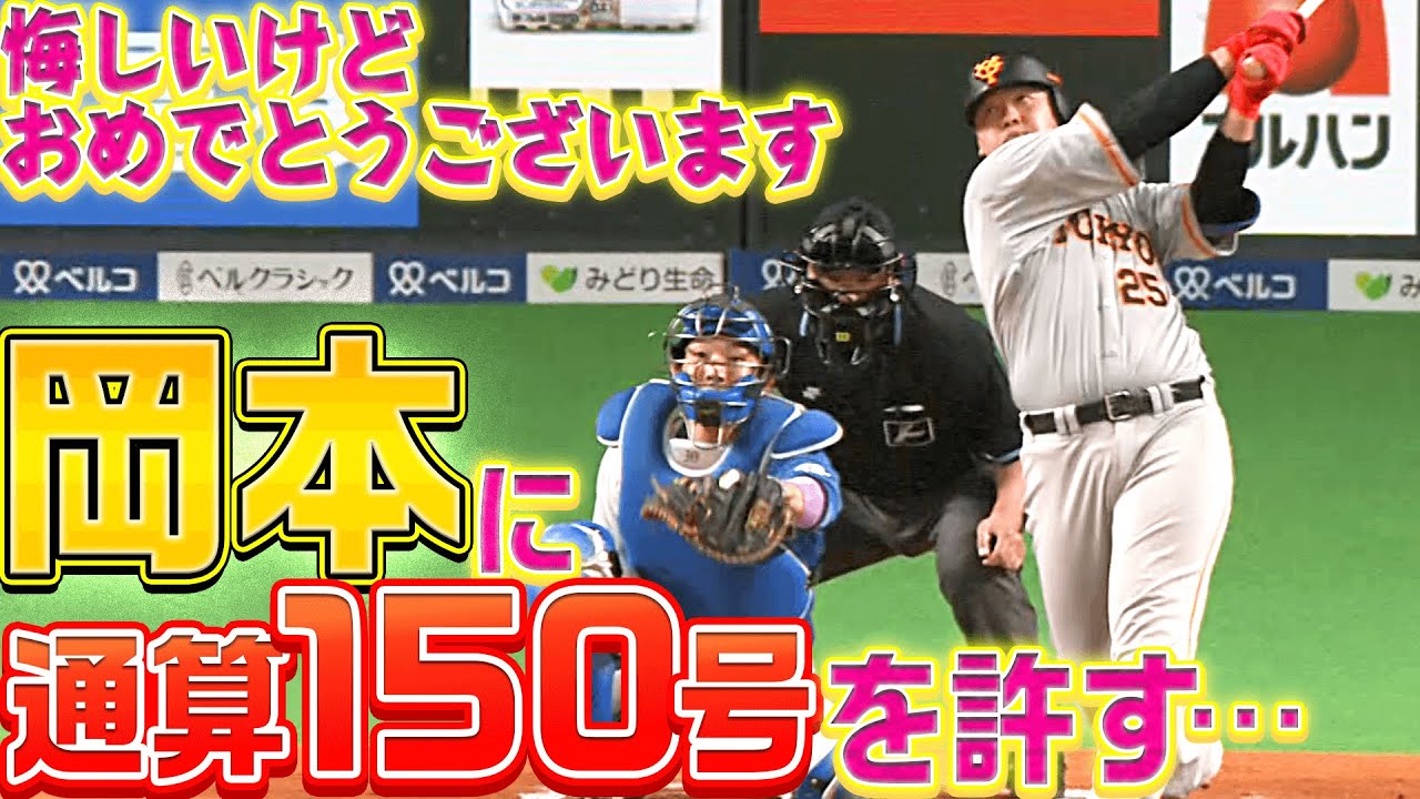 くっ…若き主砲に記念の一発。北海道日本ハム・根本悠楓が巨人・岡本和真にファンの待つライトスタンドへの15号ソロを許し、これがプロ通算150本目の本塁打となる…。