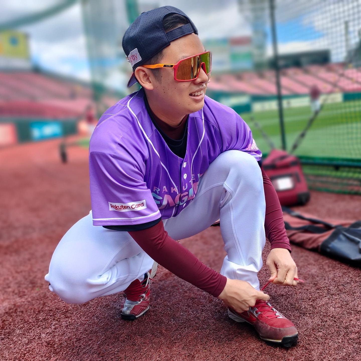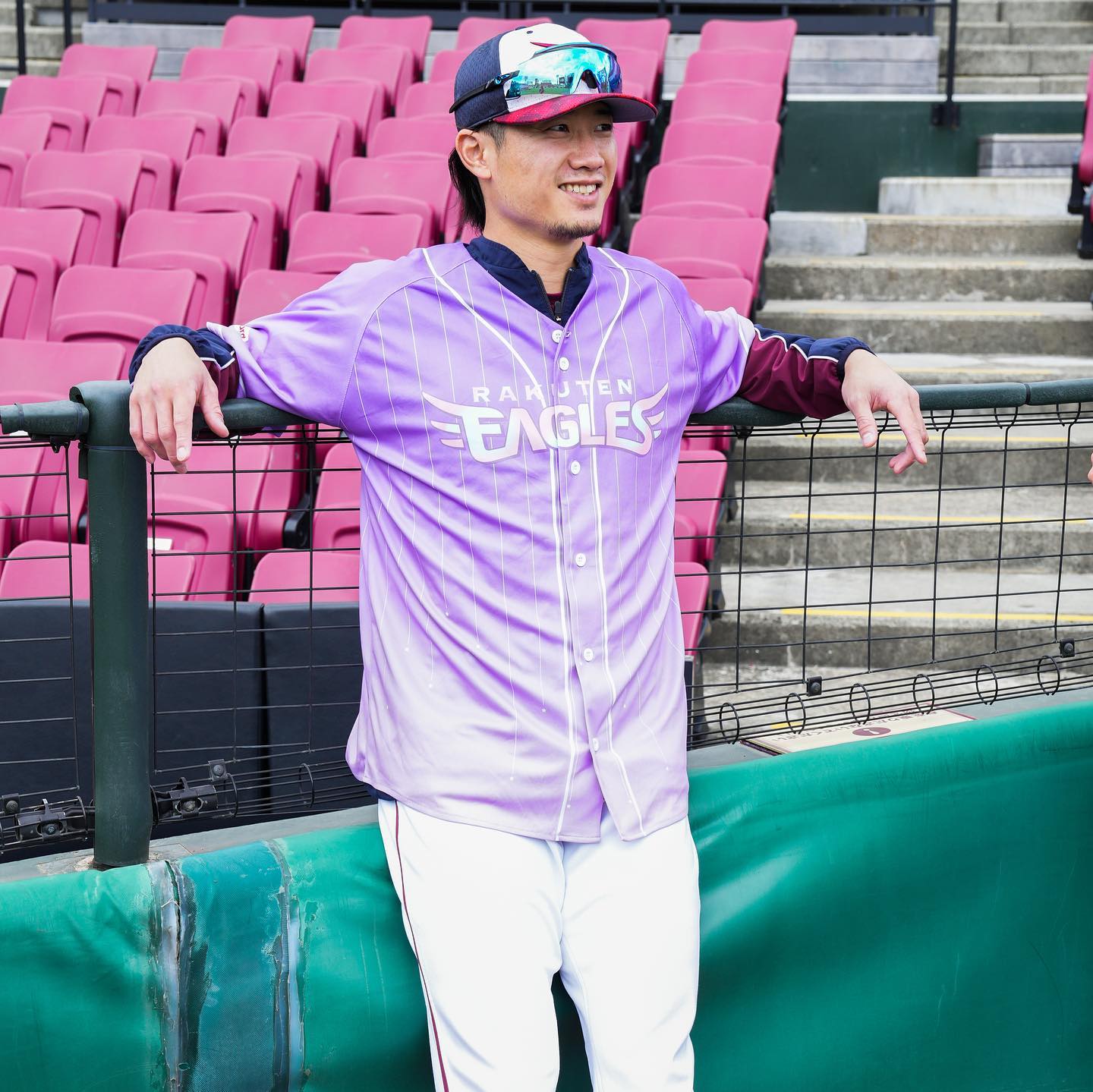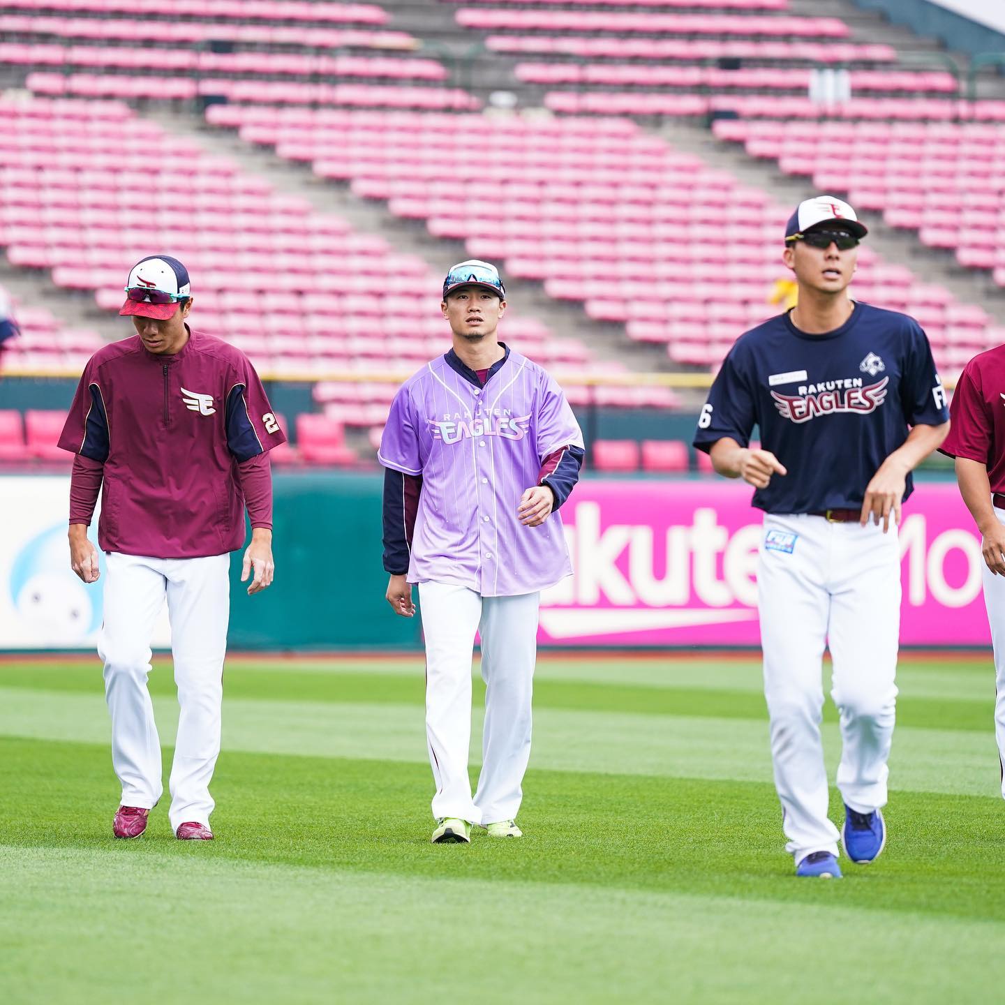 🎀楽天カードpresents イーグルスガールデー6/25(土)26(日)に開催✨.西川遥輝選手と松井裕樹選手が来場者プレゼントのイーグルスガールユニフォームを着て練習していました⚾️ 今年は男性にもプレゼント✨スタジアムを染めましょう💜.西川選手・松井選手ともにXLを着用👕詳しくは球団公式WEBサイトでチェックしてください✅.バイバー公開トークには動画も💭.#RakutenEagles #イーグルスガール #イーグルスガールデー #西川遥輝 #松井裕樹 NPB Pacific LeagueOfficial MediarakuteneaglesTohoku Rakuten Golden EaglesTohoku Rakuten Golden Eagles Official Mediaイーグルスガールイーグルスガールデー東北楽天ゴールデンイーグルス松井裕樹西川遥輝 NPBHUB.COM | The Fanbase of Nippon Baseball & Nippon Professional Baseball
