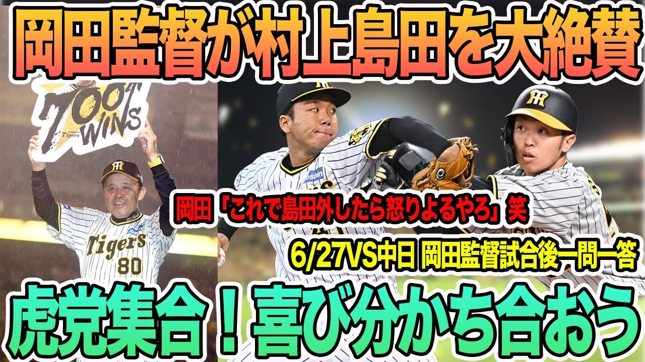 【岡田監督が村上、島田を大絶賛】久々快勝による虎党歓喜の声まとめ 岡田監督一問一答 #阪神 #阪神タイガース #岡田監督 #一問一答 #佐藤輝明 #前川右京 #村上 #島田