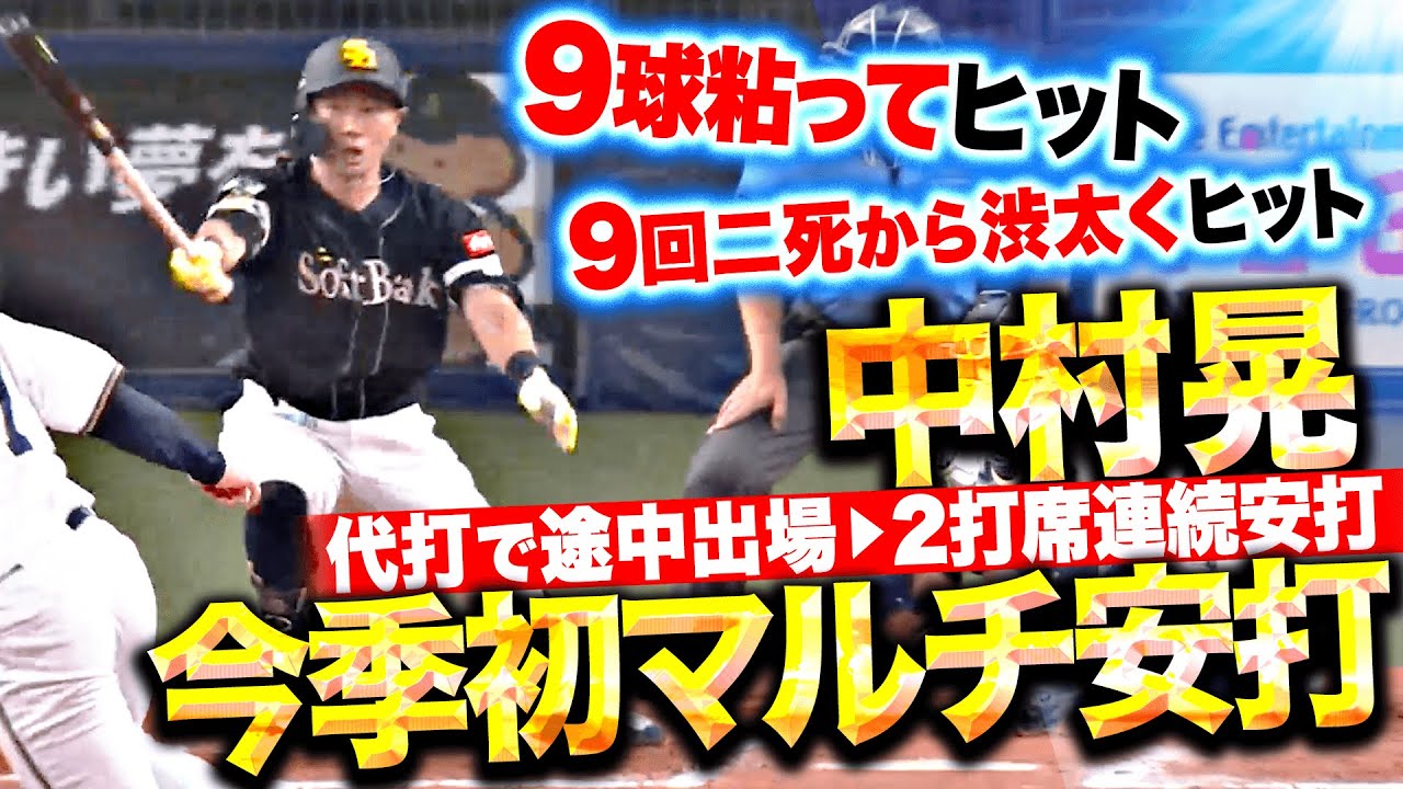 【今季初マルチ安打】中村晃『8回から代打で登場…9球粘ってヒット → 9回二死からしぶとくヒット』