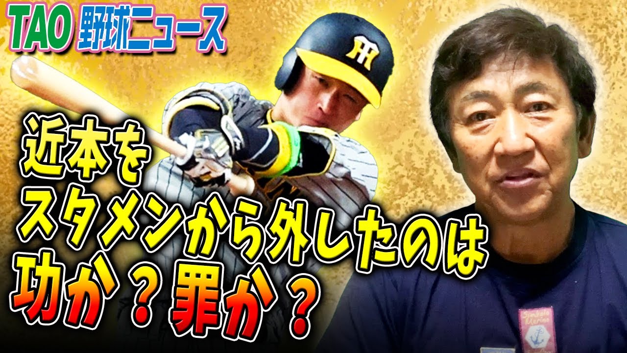 [音楽] ネ皆さんこんにちはえ今日は神宮球場で 予定されておりましたヤクルトスワローズ 対阪神タガの一戦え雨で中止ということに なりましたえま昨日タイガースがですね 久しぶりに大量点を取って8対1でえ買っ たということでこの打撃の勢いさあ今日 からどうなのかなっていう風にま楽しみに はしていたんですけれども1日これ雨で 流れたということになりましたまあ移動日 なしの戦いだったのでまあ1日移動日と いう風に考えて明日以降に行かしてもらい たいなという気持ちで見ておりますけれど も今日はですねえその中でえ1つ昨日え 近本選手がですねスターティングメンバー から外れたこれはですねやはりちょっと 大きなポイントだったかなっていう気が するんですよねそしてその代わりに出た 島田がですね活躍しましたね一度責に ファアボールで出てすぐエンドランでえ3 塁まで行ったま点にはならなかったんです けれどもちょっとこうチームに活気が出た なそういうものを感じましたねえその後も ですねヒット2本打ちましたえ盗塁は1個 試みたけれどもこれはアウトになりました けれどもまあの動きっていう点からすると ですねえ島田が入ったことでチーム全体の 動きがですね出てきたような気がしました ねまそういうものもあってえ昨日の7回8 回の4.4点大量発展というようなものに 結びついていったのかなという気がするん ですけれどもまえこういう形になった1つ ポイントこれ近本を外してえ島田を使った ということなんですがま僕の中ではですね タイガースで1番大切な選手これは僕は 近本じゃないかなと思って見てるんですね え他の選手の代わりは探せば見つかるかも しれないけれども近本の代りって今の ところタイガの中では見つからないんです よねそのの近本をあえて外してえ島田を 使ったこれ岡監督思い切った決断が必要 だったと思いますねどういう理由でえ近本 を外したのかなっていうところで今日は ちょっと僕なりの考えを皆さんにお伝えし ていきたいなと思うんですがま監督という 仕事はですね自分の受け持った選手たち その選手たち全員のですね力を借りてえ1 試合でも多く勝つためにどうしていくの かっていうことを考えていくのが監督の 仕事だと思うんですねそういう点でま近本 今ちょっと状態が良くないえ現在はですね 2割52厘ですねえま大体2割キュブ近く 打つバッターがですねちょっと打率が低い そしてえまここ数試合ずっと内容も良く ないということでうんこれ考えたと思い ますねえ打順を下の方に下げて使うのか あるいは昨日のようにですねもう外してえ 違う選手で行くのかえ岡田監督かなり考え たと思いますそん中でえ出した決断がえ 外すということだったわけですね僕はこれ 正しい決断をしたなと思いますねあのまま 近本を使っていってもですね近本そんなに え急に結果が良くなるかっていう風には 感じられなかったんですよねということで まあの外すことによってどういうことが 起きるかって言とですねまず近本とえ僕は あのスランプっていうものの1番大きな 要因はですね肉体疲労だという風に思って ます自分の先手経験の中で感じたものはえ スランプは肉体疲労そういう風に考えて おりますので調子が悪くなった時え若い頃 はですね打ち込み走り込みえそしてえいい 時のビデオを見るいろんなことをやりまし たけれどもやはり時期が来るまでは なかなか結果が出なかったというのがです ね僕の体験なんですよねその中で 素晴らしいトレーナーにえ巡り合えること ができてえそのまおじいちゃんなんです けれどもそのおじいちゃんにマッサージを してもらった2日後からはですね本当に 毎回のようにえ感覚が戻ったやっぱりこう 体がリフレッシュされたっていう形で感覚 が戻るわけですね今までどうやってもその 感覚が取り戻せなかったものがですね戻る わけですこれはやはり肉体疲労これを取る ことによってですね えーま本来持ってる自分の力がまた戻って くるそういうような気でえ野球がやれ たっていうことが何度もあったわけです そう点からするとやっぱり今年の近本僕は あ疲れてたんではないかなと思いますねま チームも去年みたいにですねまずトンと 貯金を大きくしてゆとりで戦っていく野球 ができなかったもう本当に混戦混戦え1 試合で順位が変わるそういう中でずっと これちょうどシーズン半分まで来ましたね そしてえ大山の状態が悪い大山が2軍に 行くえその中でですね普段は1番を大体 打つバッターがですね4番を任されたこで もかなりのプレッシャーではなかったかな と思いますねちょうど4番を任された時が え近本にとってはですねあんまり調子が 良くなかった時期そういう時期に夜番を 任されたわけですねということで打たな きゃっていう気持ちは強くあったとは思う んですがえ調子がそこまで上がってない時 に4番え結果も出せないそういう焦りも あったと思いますねそしてチームもですね まピッチャー