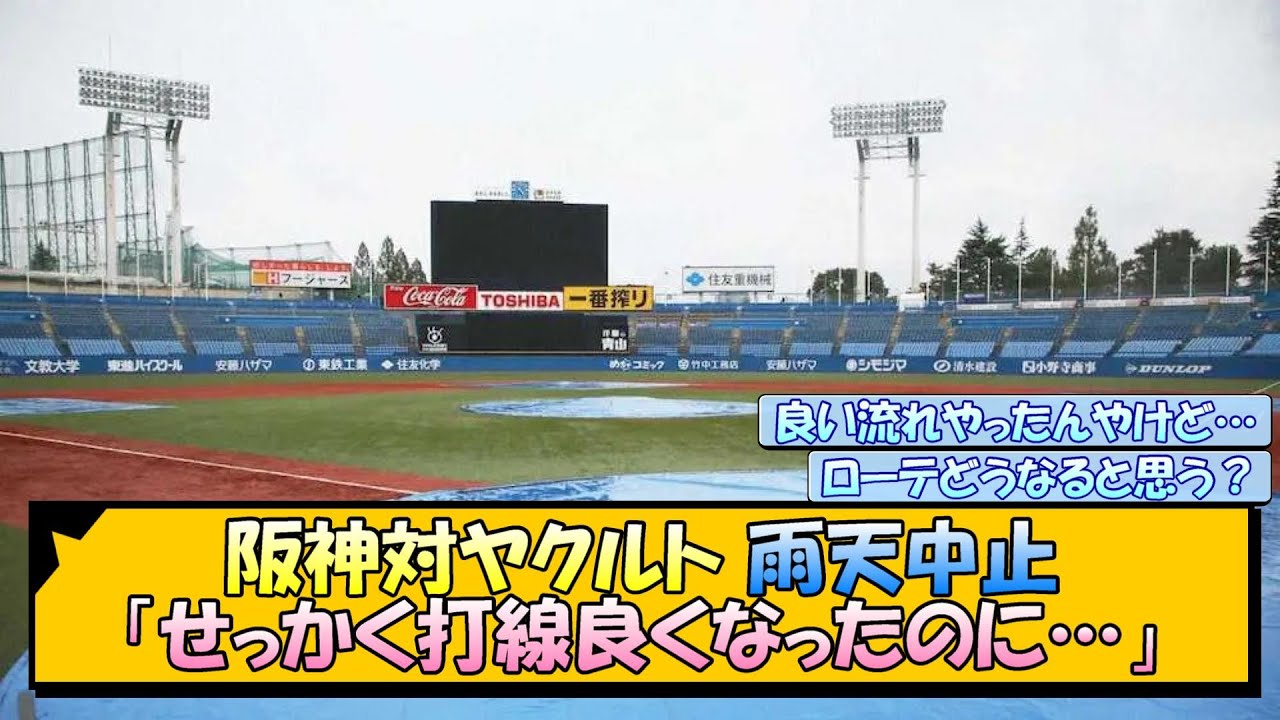 阪神対ヤクルト 雨天中止… 虎ファン「せっかく打線良くなったのに…」【なんJ/2ch/5ch/ネット 反応 まとめ/阪神タイガース/岡田監督】