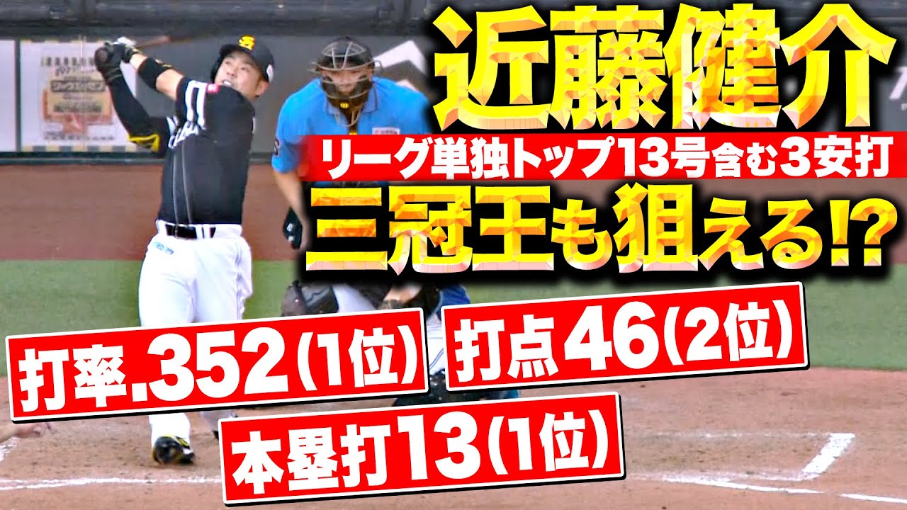 【三冠王の可能性…】近藤健介『リーグ単独トップ13号含む3安打…打率.352(1位)本塁打13本(1位)打点46(2位)』