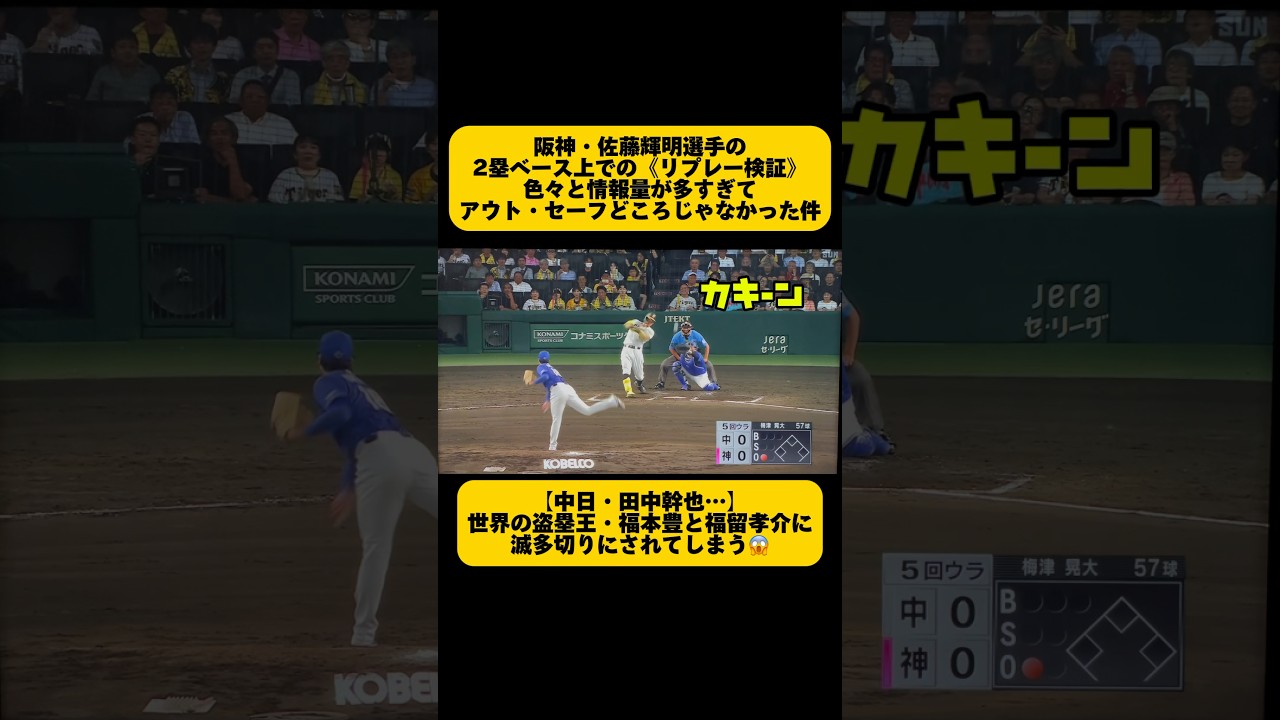 阪神・佐藤輝明が2塁へ気迫のヘッドスライディング。リプレー検証するものの、結果はアウト。