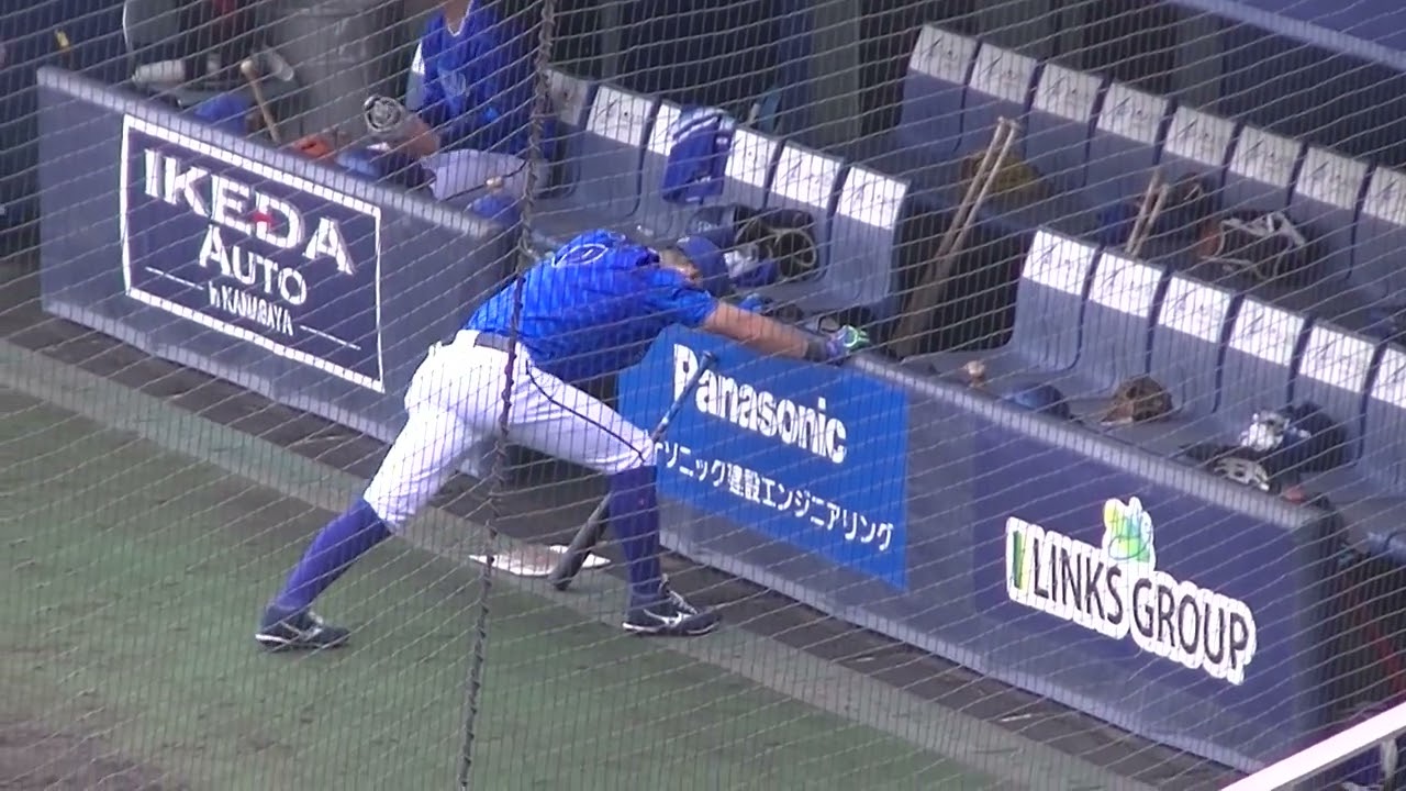 試合前ストレッチする大田泰示(2024年4月23日 日本ハムファイターズ対 横浜DeNAベイスターズ 2軍)