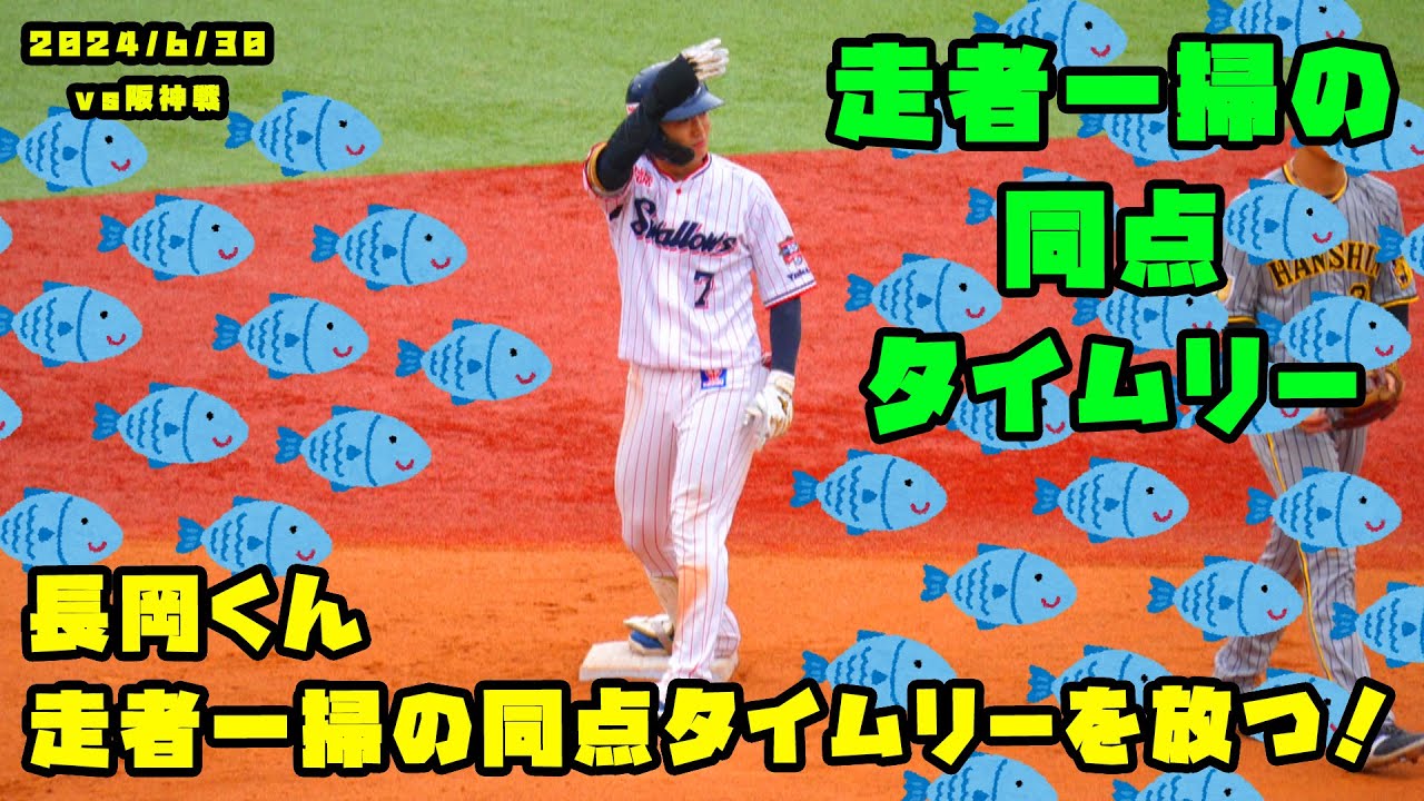 長岡くん 走者一掃の同点タイムリーでヤクルト追いつく!! 2024/6/30 vs阪神