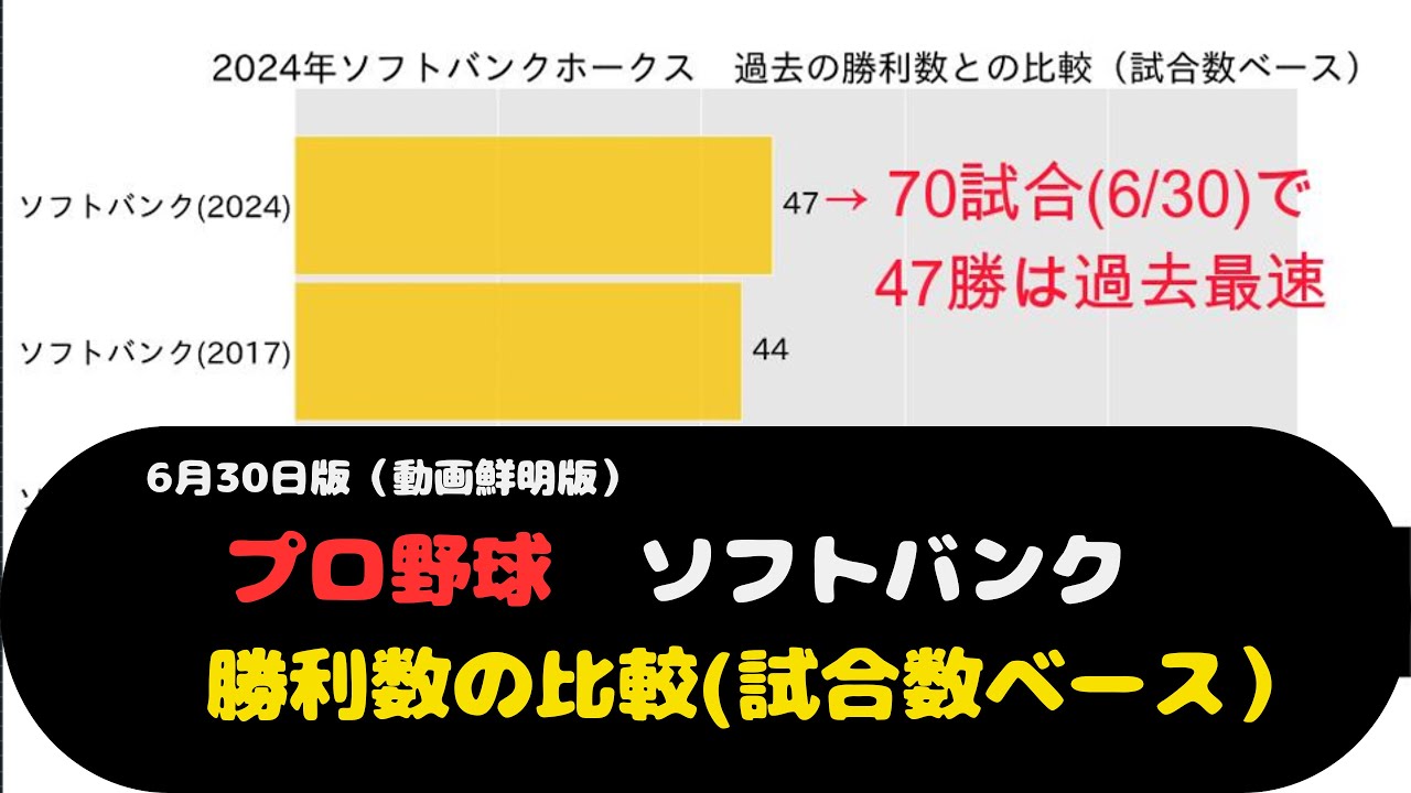 この動画では、今年の福岡ソフトバンクホークスの勝利数を【動く棒グラフ】(バー・チャート・レース)で過去の成績と比較しています。なお、試合結果を個人で集計してグラフ化・文章化しておりますので、万一、誤記があってもご容赦ください。