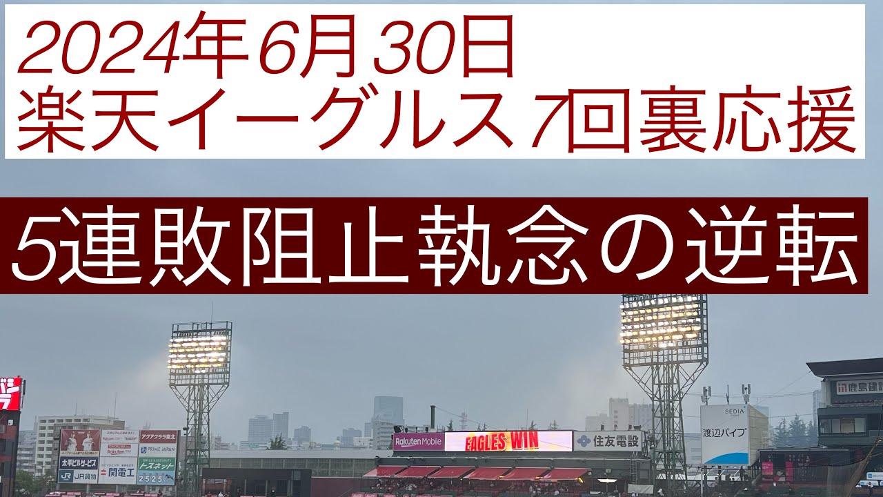 2024年6月30日楽天イーグルス7回裏応援 5連敗阻止執念の逆転 2024年6月30日日曜日 東北楽天ゴールデンイーグルス vs埼玉西武ライオンズ 楽天イーグルス7回裏応援 5連敗阻止執念の逆転 Tohoku Rakuten Golden Eagles東北楽天ゴールデンイーグルス NPBHUB.COM | The Fanbase of Nippon Baseball & Nippon Professional Baseball