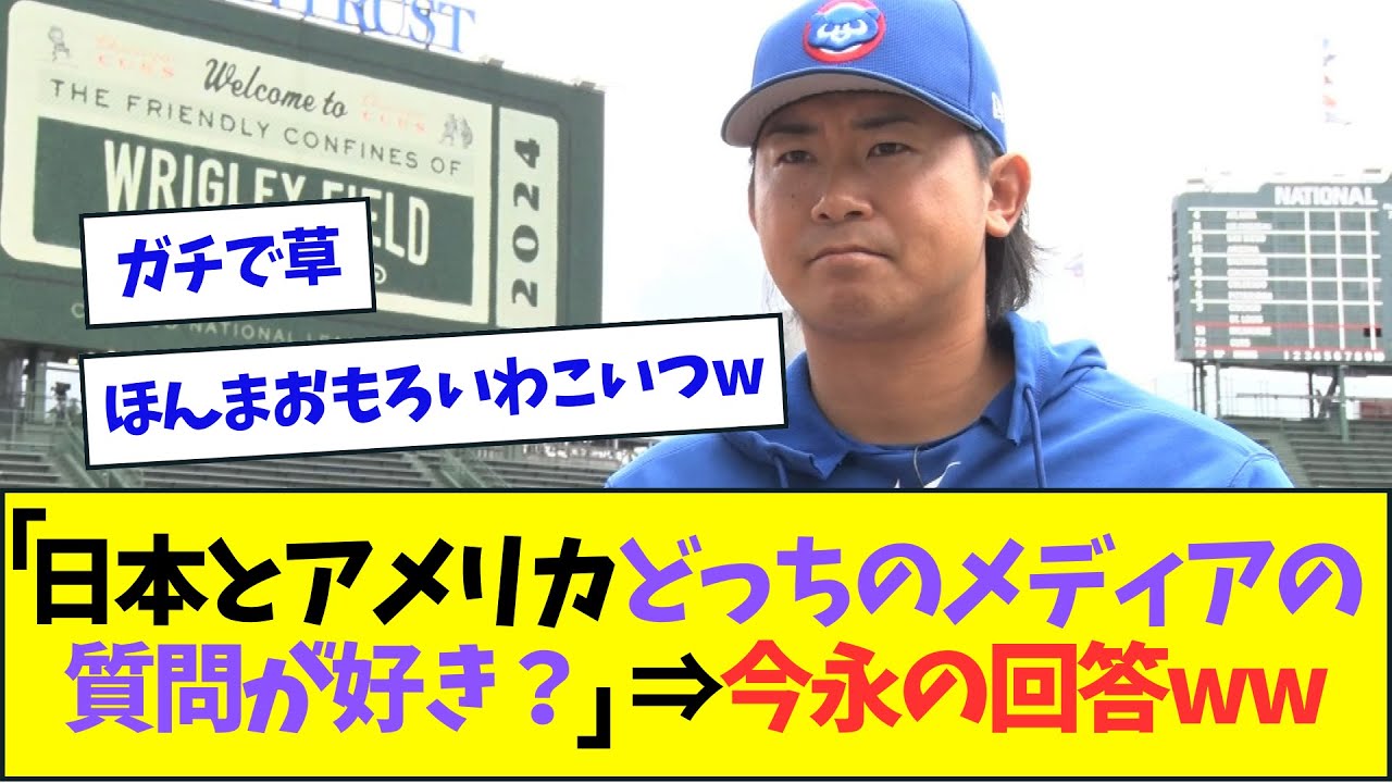 記者日本とアメリカのメディアの質問 どっちが好き今長の回答カブスの今長翔太 投手が15日日本時短16日本拠の カージナル戦に先発し7回をコチ最たの 103球を投げ4萬打1失点で7正目を 上げた防御率は1.89でリーグ3位と なった1点リードの7回に12塁でどの番 とも対決が見場だった3球目左え大きな フライそれを見守っていた川はわずかに 切れてファウルになるとほっとした表情 粘られながら8球目のスイーパーで空振り 三振に仕留めるとマウンドで2度3度がポ スタジアムからは長満員の地元班の大性が こだましたベンチへの帰りはムほとハイ タッチした試合後の主材で最後の場面で マウンド上で何を考えていたかと質問され た今川はお腹が減ってたねこういう栄養素 を取らなきゃいけないなと頭の中で考えて ましたちなみにこれは本当ですと答え米 メディアを表せた考えた結果はしっかり 糖質を多めに取ってタンパク質も取って ビタミンも取ってこれとこれとこれを食べ ないといけないなだったという最後の質問 は日本メディアと米メディアの質問は どちらがいいと思うかこれに今長僕は敵を 作りたくないのでノーコメントでとし再び 笑いを誘った連日の活躍と誠実活とに飛ん だ回答で現地メディアとの距離が縮まって いることを感じさせたやっぱ今なが おもろいわ今なが投手はピッチングだけで なくセンス抜群な会話も一流品今長は本当 にえがうまい当たり障りのないところは 大谷に似ているが面白さでは今長の方が 格段に上だと思う登板の時に見せる熱い パフォーマンスとインタビューで冗談を 行ってなますところそのギャップが良いの かもね今長は入団会見からちょっと面白ス フィルねこれだけの成績を残しながら笑い も取れるし現地でもますます今永は人気 でうだろうな相手の質問への回答で笑いを 誘うことができるのは今長投手は頭が良い のだなと素直に思うハグとか不真面目だと 思われないで自然に笑いを誘う質問者も 今日の今はどんな風に返してくるかとこの にしていると思うご視聴ありがとうござい ました高評価チャンネル登録よろしく願い します