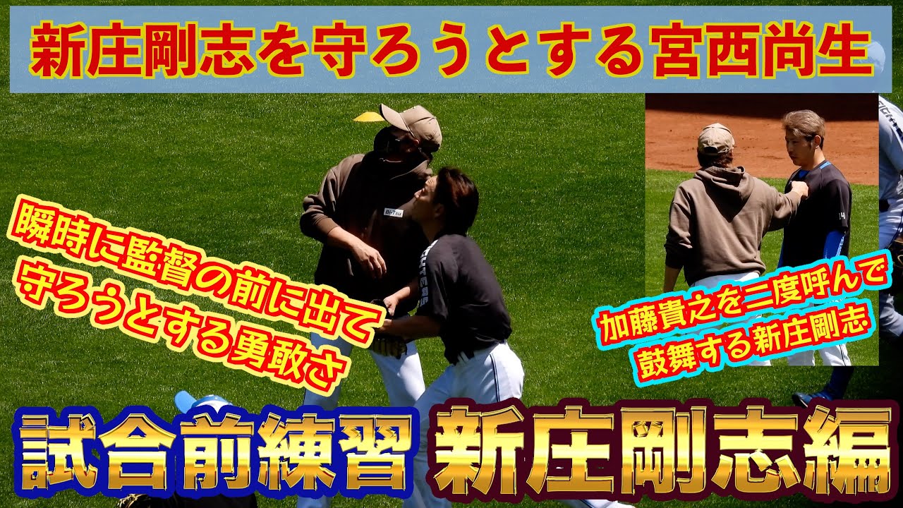 【20240630】試合前練習 新庄剛志が宮西尚生、加藤貴之、福島蓮、齋藤友貴哉に声を掛けてアドバイスや鼓舞する。