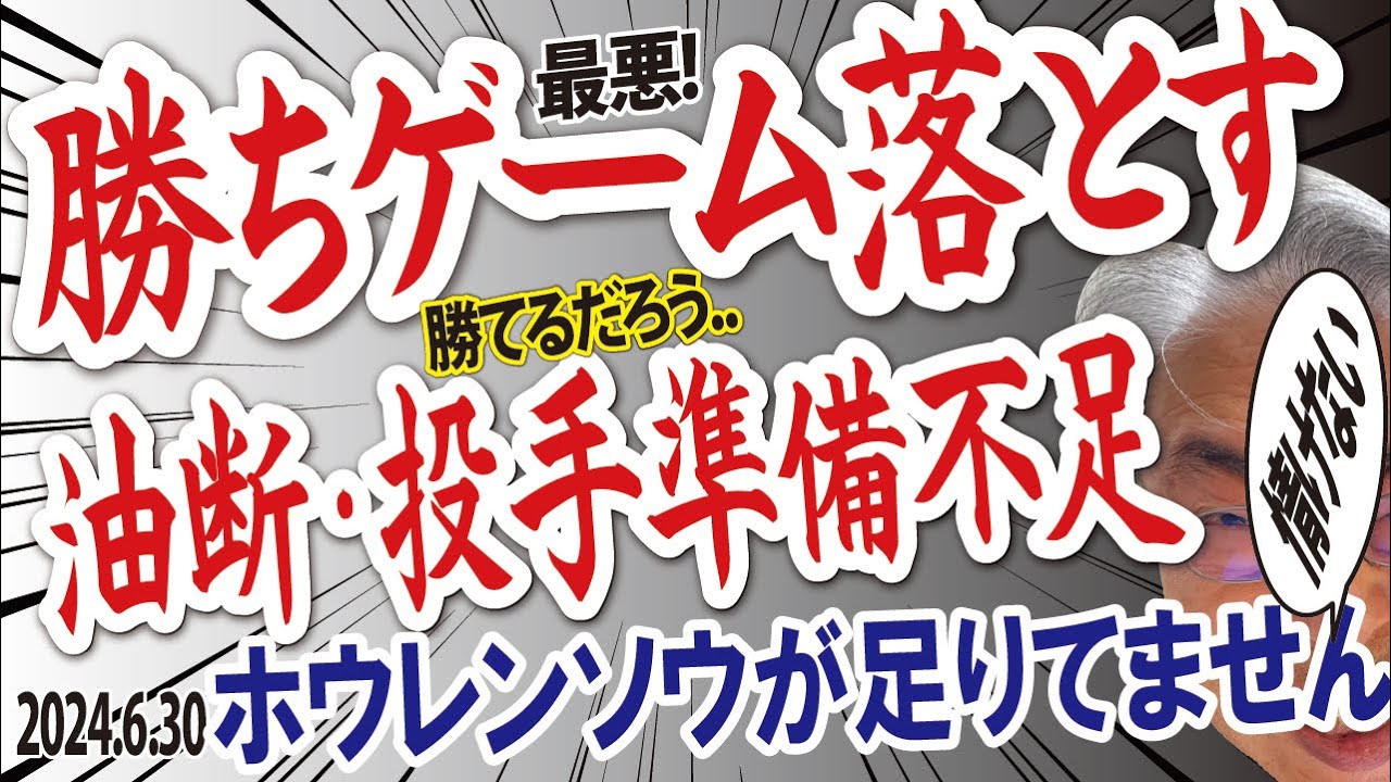 2024.6.30 ヤ6-5神 継投失敗・勝ちゲーム落とす!先発西勇輝好投・6回1失点、T5得点も4点差リード守れず逆転負け