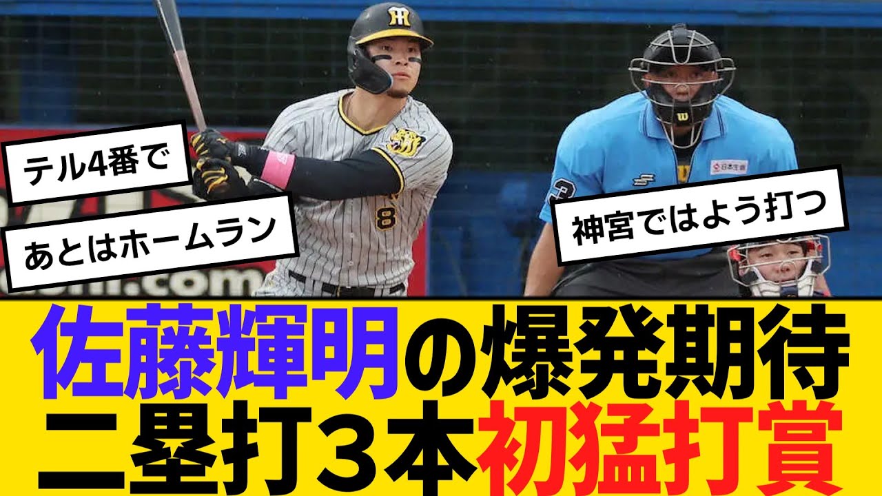 阪神・佐藤輝明の爆発まったなし!二塁打3本初猛打賞 【ネットの反応】【反応集】