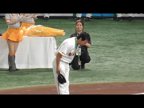 広島選手も整列拍手で祝福!巨人長野選手の1500安打の表彰式!長野選手も広島ベンチへ一礼!試合前セレモニー