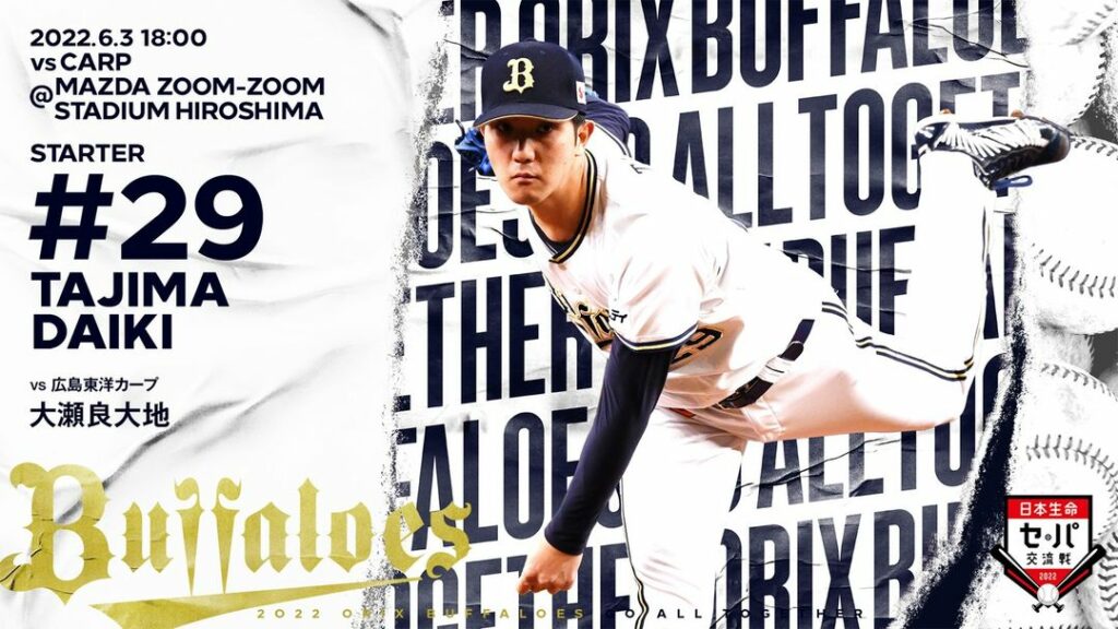 #6月3日 #広島戦 #予告先発投手 #田嶋大樹 #マツダスタジアム #18時00分試合開始 #Bs2022 #buffaloes #baseball #ORIX #プロ野球 18時00分試合開始6月3日baseballBs2022buffaloesNPB Pacific LeagueOfficial MediaORIXORIX BuffaloesORIX Buffaloes Official Mediaオリックス・バファローズプロ野球マツダスタジアム予告先発投手広島戦田嶋大樹 NPBHUB.COM | The Fanbase of Nippon Baseball & Nippon Professional Baseball
