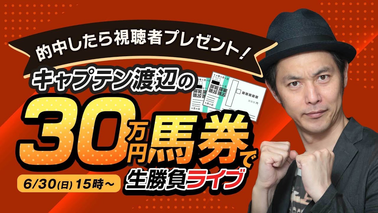 競馬芸人のキャプテン渡辺が、6/30(日)のラジオNIKKEI賞を生予想。30万円分の馬券を購入し、的中した場合、応募者の中から1名様に的中馬券をプレゼントとしてお送りいたします。