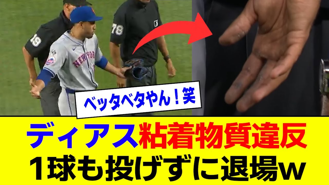 メッツのディアス粘着物質違反で1級も 投げずに退場メッツの守護心エドウィン ディアス投手が下物戦で一球も投げずに 退場処分を食らいました5対2の9回に 登板しましたが投球練習の段階でのグラブ チェックで粘着物質仕様の疑いが認められ 1球も投げることなく退場処分を受けまし た求心はディアスのグラブと手のひらを チェックしグラブの匂いをかし草も見られ ました試合後面倒さ監督は路人と汗と土 審判側はそれがトーマッチベトつきすぎだ と判断したとのべ不正物質の使用ではなく 過剰な粘着性が認められたためだと説明し ましたさらに路人と土と汗の量が過剰か どうかの線引きについてはそれは難しい 私自身が手のひらをチェックするわけでは ないので何とも言えないただMLB機構は 理由があってルールを作っているので従う しかない とも語りました一方でUSAトデの ナイチンゲール記者はXで審判長カパの 見解を投稿しましたカパ審判長は明らかに 老人と汗ではなく不正物質だ我々は何千と いうケースをチェックしているのでその 感触は知っている今回は非常にベトついて いたと述べました試合後にメディアに対応 したディアスはとても驚いたやベルトは何 もチェックされず手に特別な匂いもなかっ た2種類の老人がありいつもと同じ老人を 使った土を指につつけるのも常にやって いること今日特に汗が多く出たのかどうか は分からないと首を振りましたまた一旦手 を洗ってマウンドに戻る許可を求めたかと いう質問にはそれができるかどうか分から なかったしそうしなかったと答えました則 によればリアスはの出場処分を受けること になりますリアスはチームメイトに負担を かけることになるのが辛いとがっくり肩を 落としました処分に不服として意義を 申し立てるかと問われるとそれは分から ないと言葉を濁しましたSNSの反応 べったべたやん笑笑いや粘着物質バレバレ やないかいこれはダメだわリアスが悪いの ではなく滑るボールを供給し続けるMLB 機構がアウと選手会もっと主張できないの か 汗と路人って言いそうな見た目だねいい 加減まともなボール使えてMLBそもそも 汗と路人でもめっちゃべたつかせること できるのに審判の主観で退場かどうか 決まるルール血管すぎんか手のひら すんごいことになってたな残念ボール帰ろ や怪我する選手たちがかわいそう使って ない選手が大半なわけでまともなボール 使え云々はまと外れこんなの違反した時点 で退場じゃなくてチームの負けでいい でしょ確信犯なんだからピッチャーの肘肩 により負担をかけないボールがあるのに 選手会はピッチャーを守れと行動しない 不思議ボール変えたら粘着物質がなくなる と思ってる人安直すぎるてかバレるのに なんでやるのバレた時どれだけ避難される のかも良い大人が考えつかないのかなご 視聴いただきありがとうございましたこの チャンネルではどこよりも早くMLBの 情報をお伝えしますのでチャンネル登録 よろしくお願いしますDET