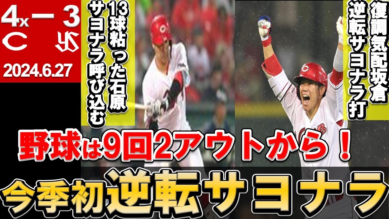 カブすきじゃけ チャンネルはいどうもカブすきじゃけ チャンネルです今回は27日のヤクルト戦 振り返りますので是非最後までご覧 くださいまたこのチャンネルの登録まだの 方はチャンネル登録もよろしくお願い いたしますそれでは内容に参り ましょうさあということで27日の ヤクルト戦ですが4対3でカープが さよならガチを決めたということでこれが 今シーズン初のさよならガチそしてカード 3連勝ということでですねえ非常に 素晴らしいゲームにねなったんじゃない でしょうかね9回2アウトからのねえ さよなら逆転劇ということでですねま正直 ねえま田口投手でしたし厳しい場面だった とは思うんですけど2アウトからね石原 選手が繋いでで坂倉選手が決めたというね 非常に価値のあるねえガッチゲームになっ たかなという風に感じましたのでまたこの 勝利が勢をづけてくれるということをね 期待してますでスターティング ラインナップなんですけどま上位について は変わりがなかったですねえ上位について は変更がなくで6番ですねキャッチャー この試合はアドア投手とえ先発ということ で石原選手がマスクかぶりましたで ファーストで坂倉選手が起用されてると いうことでまここはねおそらく石川投手と 相性がいいということでまた状態が向いて いるのでまファーストでのスメということ になったんではないでしょうかで得点なん ですけどまず初回ですね小野選手がが セカンドゴロを打つ間に同点に追いつき ましたで5回の裏にはですね菊選手が レフトで第5号ソロホームランでえ 勝ち越しに成功しますそして1点 ビハインドに迎えた9回ですね坂倉選手が レフトへ逆転2点のタイムリリットという ことでえ見事決めてくれまし たさあでは野人の注目ポイントですがこの ゲームはですねやっぱりヒーロのね坂倉 選手です3打数1アタ2打点ということで ですねえ2試合連続打点となるね最後の タイムリヒットは逆転さよならということ でま非常にいいところで出た1本という ことになりましたえこの場面なんですけど 9回ツトランナー12塁という場面でです ねカウント2ボル1ストライクの バッティングカウントだったんですけど 最後ですねま外のまっすぐを逆方向に打っ たということでですねえま非常にいい形で 打てた1本かなという風にね感じましたま 当たりについてはねまクリーンヒットと いうことではなくねまそこまでえた打球で はなかったんですけどまここまでね まっすぐ全く打てていなかった中で外の 真っすぐにね空振りすることなくねえ しっかりと反対方向に打ってでそれがね レフト前に落ちるということでですねま この真っすぐへの対応っていうのがね良く なってるんじゃないですかねえ前日の ホームランなんか見ましてもインハイの 真っすぐを叩いたということでえまっすぐ 打てないというのが今年のねちょっと不調 の要因ではあるんですけどまここ2試合 そのまっすぐをうまくさばいているという ことでま非常にポジティブな材料かなと いう風に感じていますでまこのヒットも ありましてタイムリーもありまして2試合 連続で打点ということでですねま本人もま 手応えを感じてるようなねコメントがあっ たということでまいい感じで打ててるとい ようなねえように感じてるようなので やっぱり本人がねそういういい状態と思っ ているということはまそれだけねえ状態を 向いている証拠かなという風にねえ期待も できますしま実際ねこういう風に2試合 続けて結果が出ているというのを見るとま こっからね間違いなく上がってきてくれる という風に信じていますえ2試合ともいい ヒットいいタイムにいいホームランがね出 ていますのでま気分的にも楽になってね ここから音量発揮してくれるということに 期待してますのでま本当にもう何回も言っ てるんですけどえ今年ね勝つには坂倉選手 の副長ってのは必ずね必要になっていき ますのでえまだまだね打率なんか見ても物 足りない数字ではあるんですけどまこう いう風に徐々にではあるですけど状態 上がってきていますのでね本領発揮してえ 欲しいなという風に期待してますま本当に いいところでね出たさよならタイムリと いうことで非常にいいバッティングでした で続いては石原選手ですねえ石原選手 ヒットはないんですけど本当にま9回のね 打席がま非常に良かったということでま 坂倉選手と同じぐらいねもう価値のある フォアーボールでしたねえ13球粘ったと いうことでですねま田口投手相手にですね ま3球でね追い込まれたんですねワン ボール2ストライクということでまかなり ま不利なカウントになったんですけどま そこからね粘って粘ってで粘り負けせずに くらいついてねファーボールを勝ち取った ということで非常に良かったですねえタ 投手が投げてる球自体もねま非常に良くて インコースにねギリギリのまっすぐ投げて きたりえまたねインコースに食い込むよう なスライダーを投げたりという風にねもう どうに