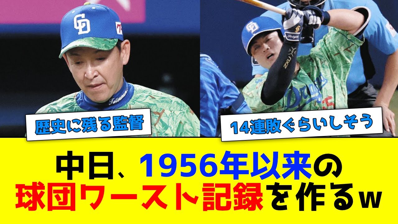 立浪中日、1956年以来の球団ワースト記録を作ってしまう