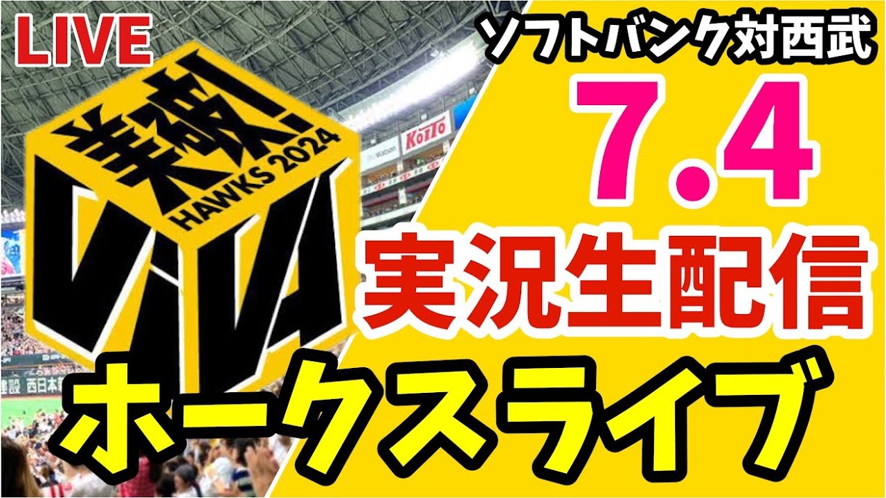 【公式戦】福岡ソフトバンクホークス 対 埼玉西武ライオンズの実況観戦ライブ! 7月4日 【ホークスライブ】 ホークスファンのプロ野球実況生配信です #ホークス #ソフトバンク #ソフトバンクホークス #ホークスライブ #福岡ソフトバンクホークス #sbhawks #埼玉西武ライオンズ #ライブ #白のキセキ #ギー太Fukuoka SoftBank Hawksソフトバンクホークスホークス埼玉西武ライオンズ福岡ソフトバンクホークス NPBHUB.COM | The Fanbase of Nippon Baseball & Nippon Professional Baseball