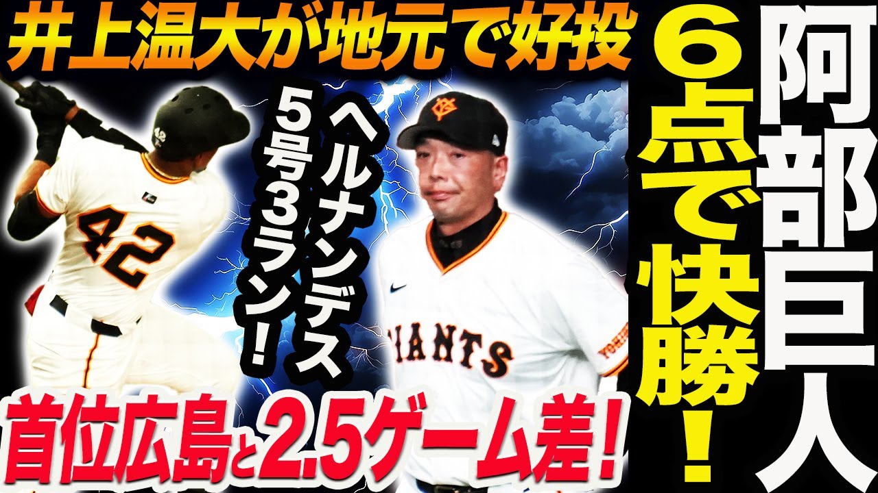 阿部巨人が6点で中日に快勝!井上温大が地元前橋で好投!首位広島と2.5ゲーム差!ヘルナンデス5号3ラン!読売巨人軍 ジャイアンツ 巨人 GIANTS 阿部監督