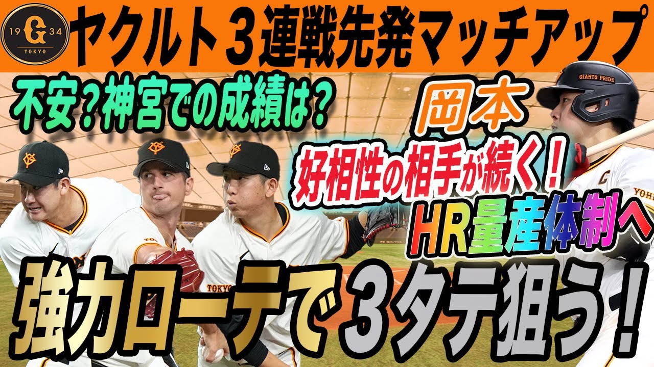 【巨人】強力先発ローテで3タテもある?!ヤクルトとの3連戦先発マッチアップ!岡本が得意な投手が相手だ! 読売ジャイアンツ