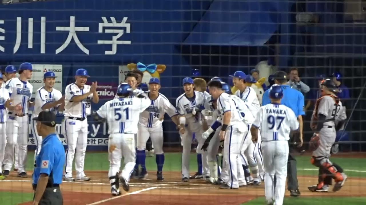 4-4で迎えた延長10回裏1アウト走者なしで宮﨑敏郎(宮崎敏郎)選手が通算4本目のサヨナラ本塁打で劇的勝利。