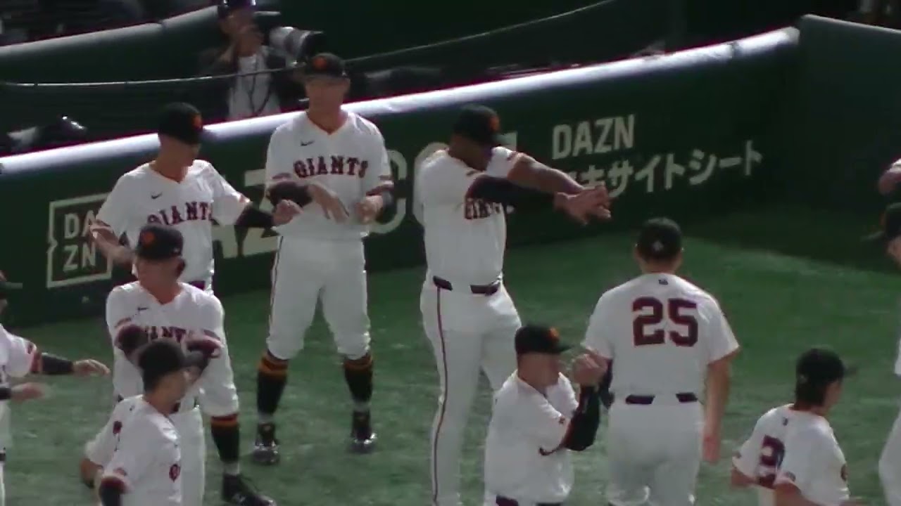 トレードの若林楽人に話しかける佐々木俊輔(2024年6月28日読売ジャイアンツ対 広島カープ)