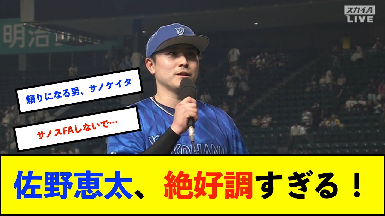 [音楽] 佐野慶太絶好調 すぎる佐野延長10回勝ち越しだ震え ながら絶対自分が決めるんだという強い 気持ち で延長10杯に迎えた一3塁のチャンスで 佐野が中前へ勝ち越しの敵地だその裏は 守護神の森原が西1ミのピンチを切り抜け て敵地で競り勝った佐野はオースティンの 出塁のしい神類だ打席に立つ前に震え ながら絶対自分が決めるんだという強い 気持ちで打席に立ちましたと厚い口調で 話したDNAは新旧首相の活躍で阪神に 勝利し貯金4首位広島にゲーム差1に迫っ た試合を決めたのは全首相のバットだった 延長10回13塁佐田阪神美のじた132 kmの変化球に食らいついた野球は全身 守備の二感をしぶく破り中前的時だとなっ た打席に立つ前に震えながら絶対自分が 決めるんだ決めてやる問いう強い気持ちで 打席に立ちましたいいところに抜けてくれ てよかった戸を張った両軍無特典の3階に タ塁ではマが左翼フェンス直撃の敵地に ルダを放ち先生に成功新首相は延長10回 無2類の打席でも10級粘った水に見頃で 者を進める企画を見せた前師匠の佐野は ネクストで1番近いとこからマの打席を見 ていたマの企画ってものがすごい伝わり ましたしシチュエーションを作ってくれて 僕も楽に打席に立つことができたと感謝 自身も5戦連続安打と2戦連続のマルチで チームを牽引した三浦大輔監督は オースティンが出て走ってマが食らいつい て操車を進めて佐野に回しましたからね チームの期待に答えてくれた佐野の バッティングだった嫌いの言葉をかけた 首位とのゲームさが縮まったことについて はまだまだこの時期ですからまた明日全員 で集中して戦っていきます前を向いた佐野 震えながら打席に入りました真面目な元 キャップインタビューがすっかり優等生よ ね佐野さす連日のヒロインやろ佐野2夜 連続佐野て2日連続を立ちだいってあっ たって20年に3日連続とってたような 期待しないでください言ってた頃になる 男神キャップの自爆を解いた佐野は無敵今 の佐野ならFAしてどうぞとか言われん やろ嬉しいいやほんまにどれだけ救って くれるのかノスしないでさ残ってください 合いなくてみがなかったけど佐野が好調や からよし勝ち越しにつがったマと佐野の 打席が年出ててよかったなあの会に関して は一点への年が違いすぎたなやっぱ キャプテン経験者って違うわの調がマジで でかいご視聴ありがとうございました高 評価チャンネル登録よろしくお願いします [音楽]