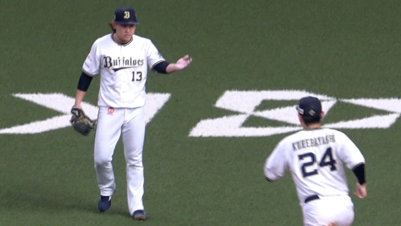 5回無失点とほぼ完璧に抑えた宮城大弥、「こっちこっち!」のジェスチャーで紅林を呼び寄せる