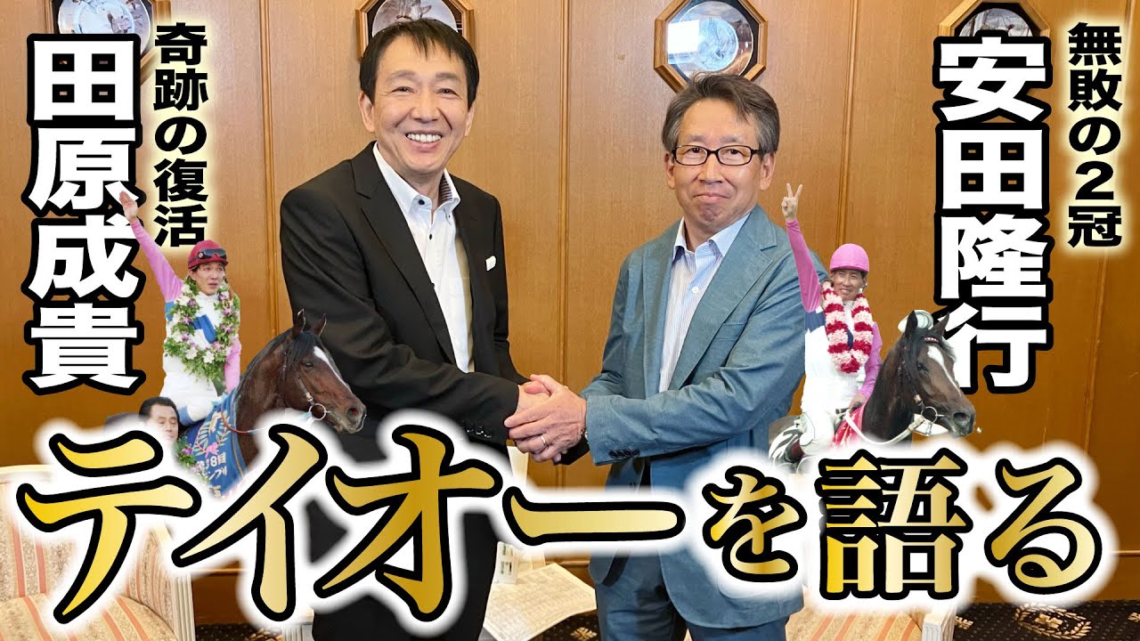 トウカイテイオーの背中を知る、ふたりの騎手ーー。ダービーで無敗の2冠を達成した安田隆行氏と、有馬記念で奇跡の復活に導いた田原成貴氏による夢の対談が、令和の時代になって実現しました。「奇跡の名馬」と呼ばれたトウカイテイオー。手綱を取った者にしかわからない魅力を語り尽くします。