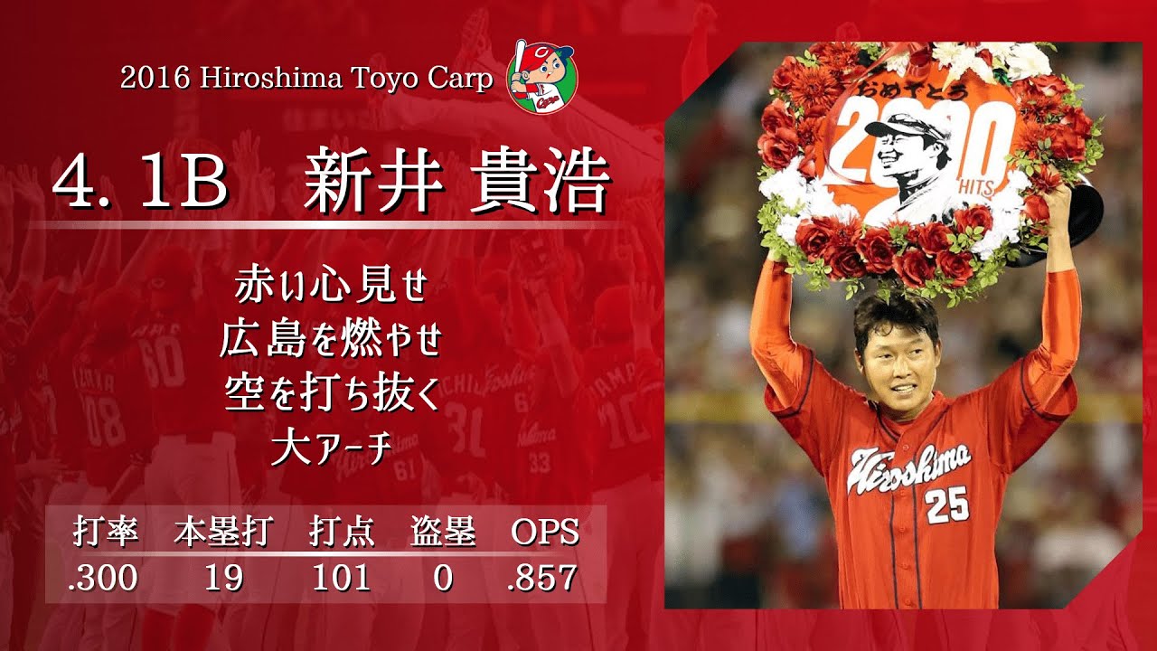 田中-菊池-丸–新井-鈴木-エルドレッド-安部-石原-投手(野村-ジョンソン-黒田)-松山-會澤-ルナ