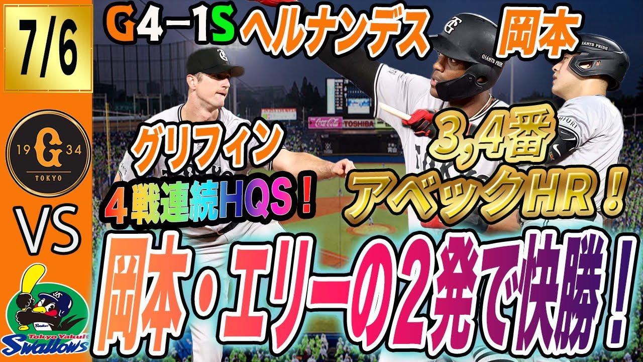 ヘルナンデス・岡本のアベックホームラン!グリフィン快投!巨人は3連勝で奪首も見えてきた! 読売ジャイアンツ