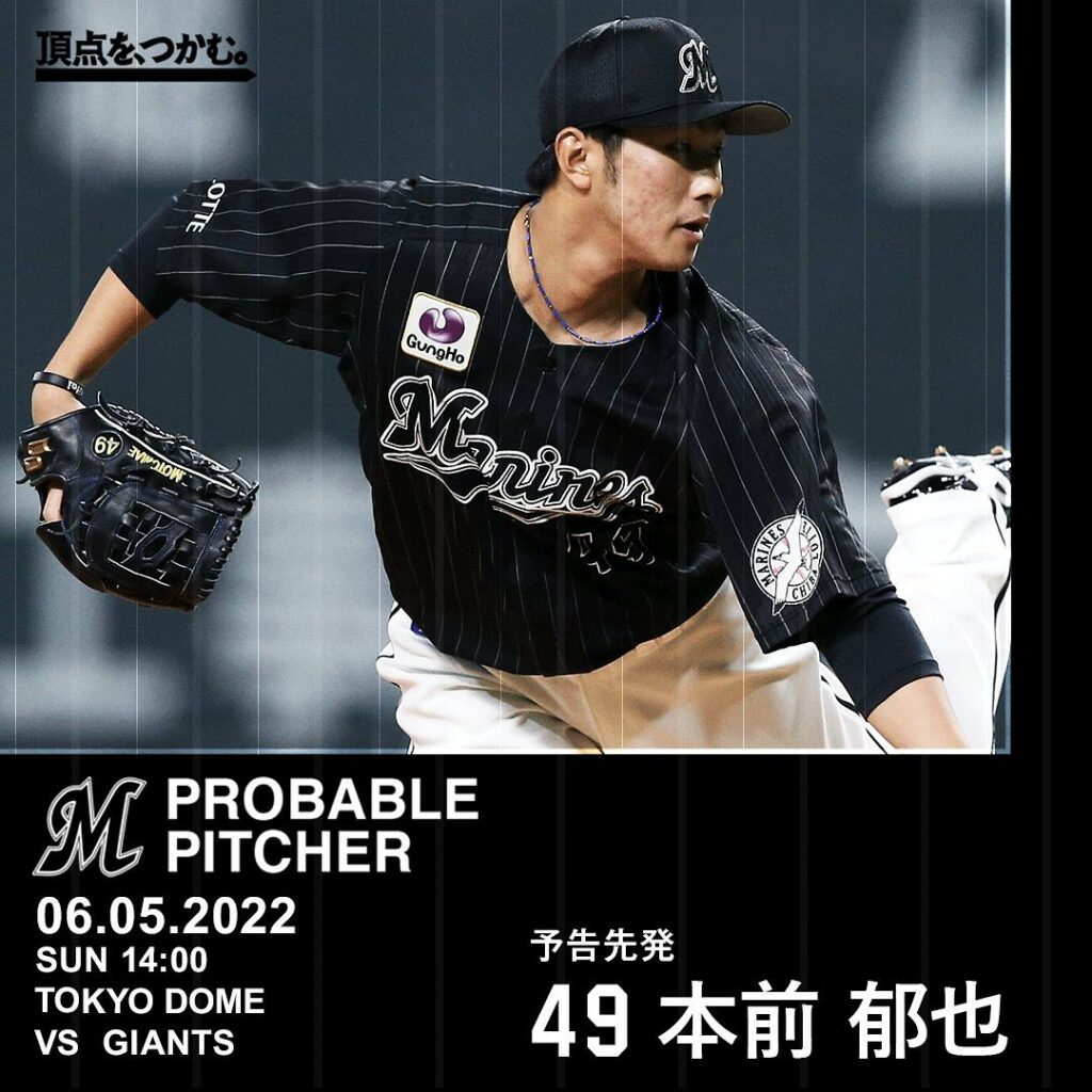 06.05.2022 予告先発:#本前郁也 投手 #chibalotte #2022セパ交流戦 2022セパ交流戦Chiba Lotte MarinesChiba Lotte Marines Official MediachibalotteNPB Pacific LeagueOfficial Media千葉ロッテマリーンズ本前郁也 NPBHUB.COM | The Fanbase of Nippon Baseball & Nippon Professional Baseball