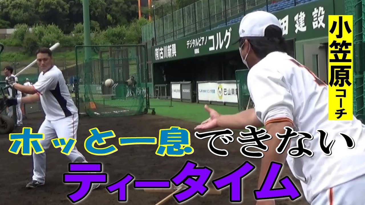 ティー打撃の時は特に、選手と多く会話しながらアドバイスを送っています。