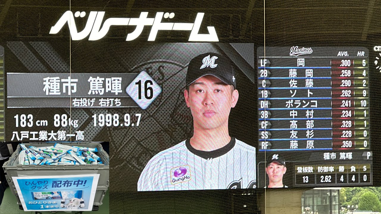 無料配布のひんやりグッズで体を冷やしてくださいね マリーンズ 試合前スタメン発表【西武vs ロッテ】2024/7/6