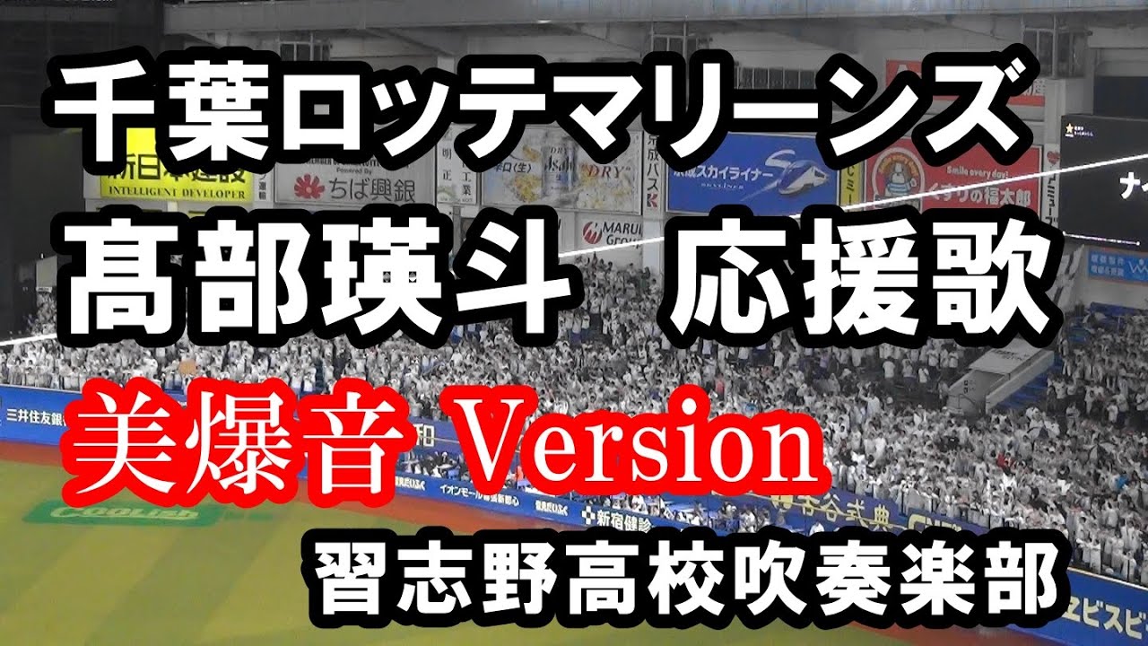 【現地撮影・歌詞付き】千葉ロッテマリーンズ 髙部瑛斗 応援歌 習志野高校吹奏楽部Version #千葉ロッテマリーンズ #髙部瑛斗 #美爆音 #習志野高校吹奏楽部 2024年6月28日 千葉ロッテマリーンズ vs オリックスバファローズ 2回裏に演奏された髙部瑛斗選手の応援歌です。 応援歌ができてから初めての習志野高校吹奏楽部による美爆音版が演奏されました この日に演奏された応援歌まとめはこちら(たくさんの応援歌がメドレーになっています) #プロ野球Chiba Lotte Marinesマリーンズマリーンズ応援歌ロッテロッテ応援歌千葉ロッテ千葉ロッテマリーンズ応援歌野球髙部瑛斗 NPBHUB.COM | The Fanbase of Nippon Baseball & Nippon Professional Baseball